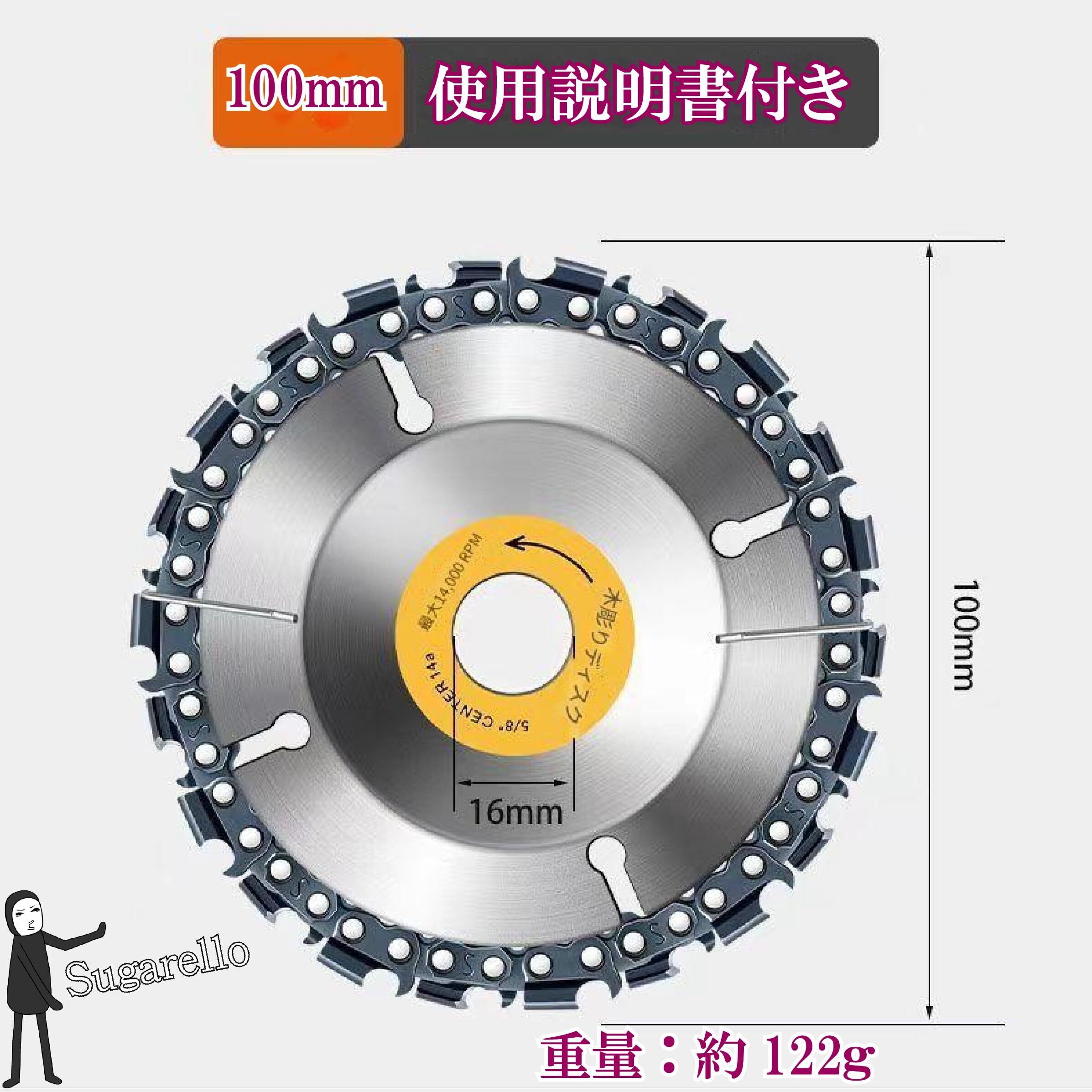 Sugarello チェーンソー 小枝切り 木工用 グラインダー 園芸用 竹切り 木彫 工芸 氷彫刻 22歯切り 直径100mm 穴径16mm ディスクグラインダー用 (2枚)