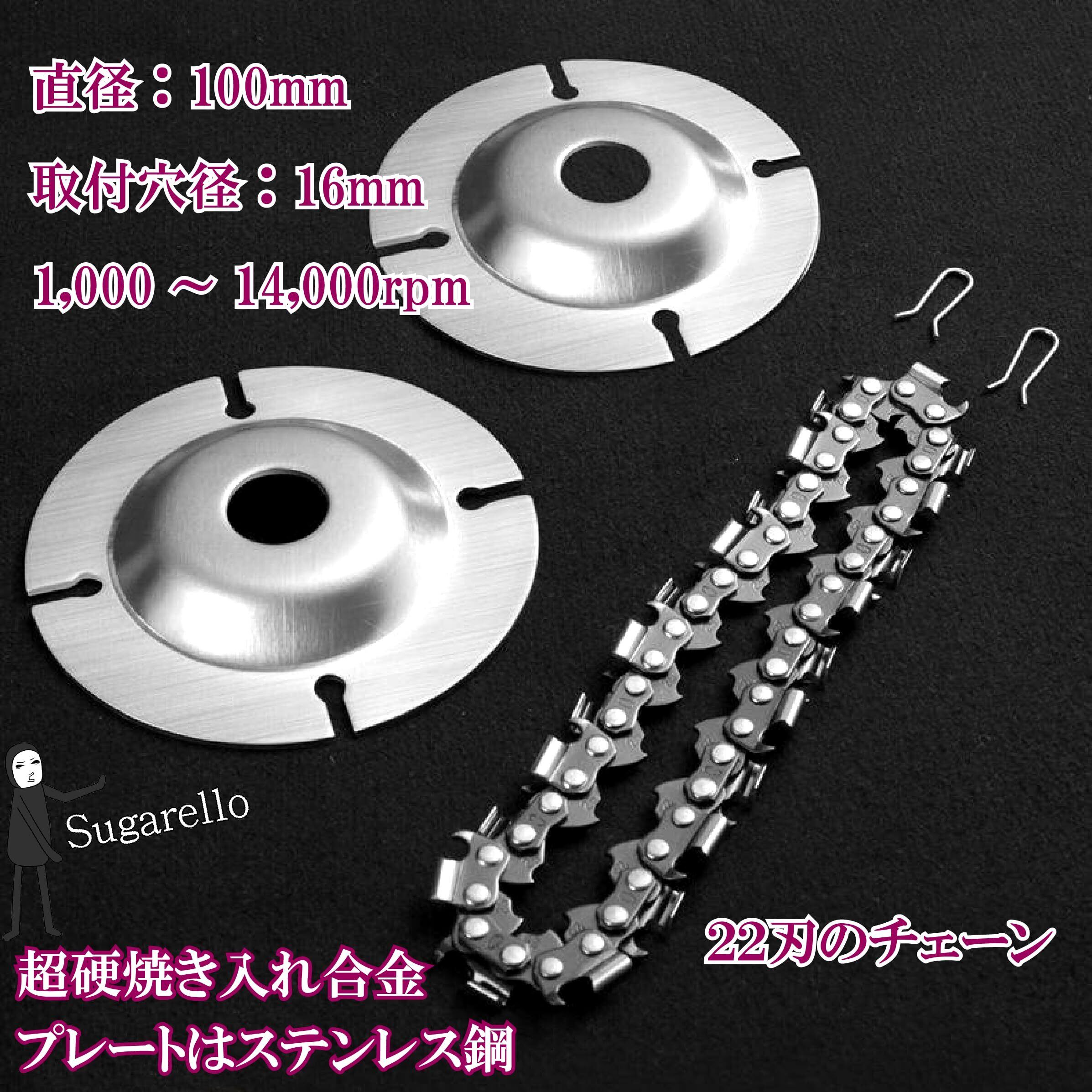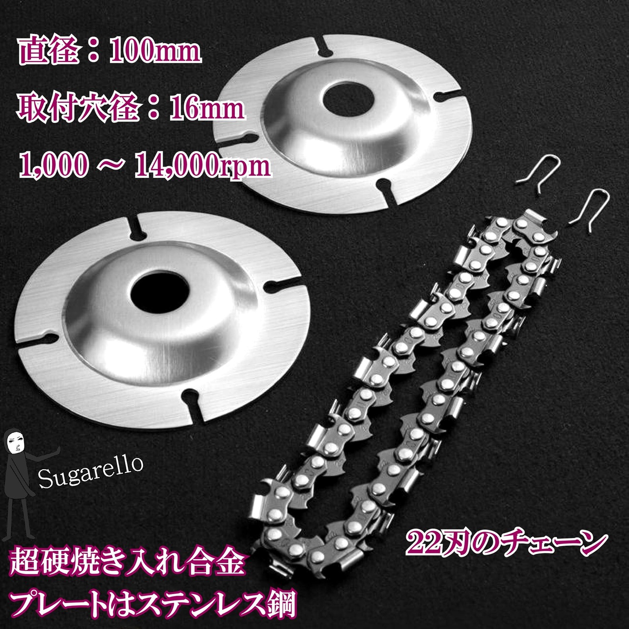 【新着商品】Sugarello チェーンソー 小枝切り 木工用 グラインダー 園芸用 竹切り 木彫 工芸 氷彫刻 22歯切り 直径100mm 穴径16mm ディスクグラインダー用 (2枚)