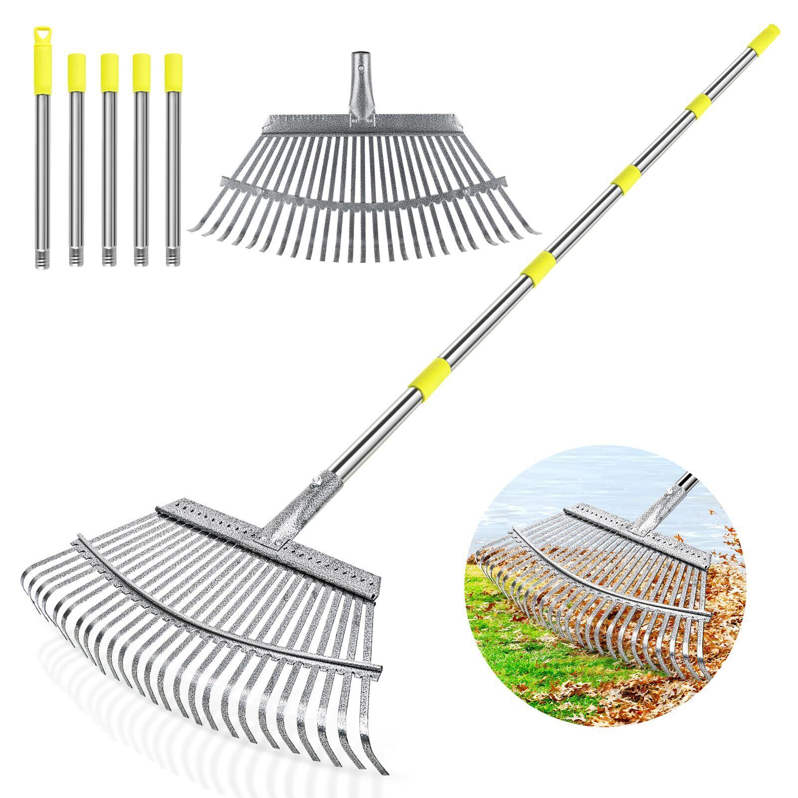 【2025最新】熊手 レーキ ガーデンレーキ 25爪 ステンレス鋼 4段階の長さ調節が可能 92cm-184cm 吊り下げ式 使用する雑草/落ち葉/園芸/芝生/草用具/庭掃除/農業 掃除 道具 日本語の説明書付き