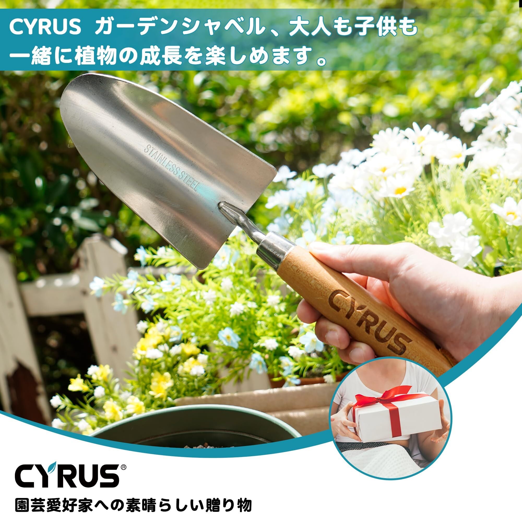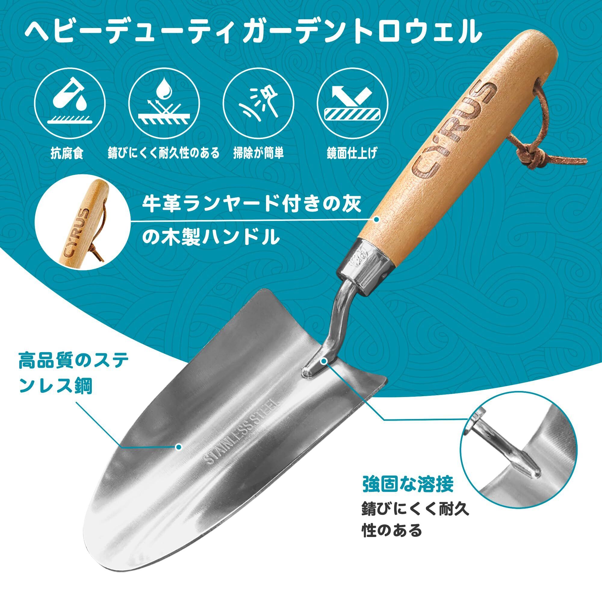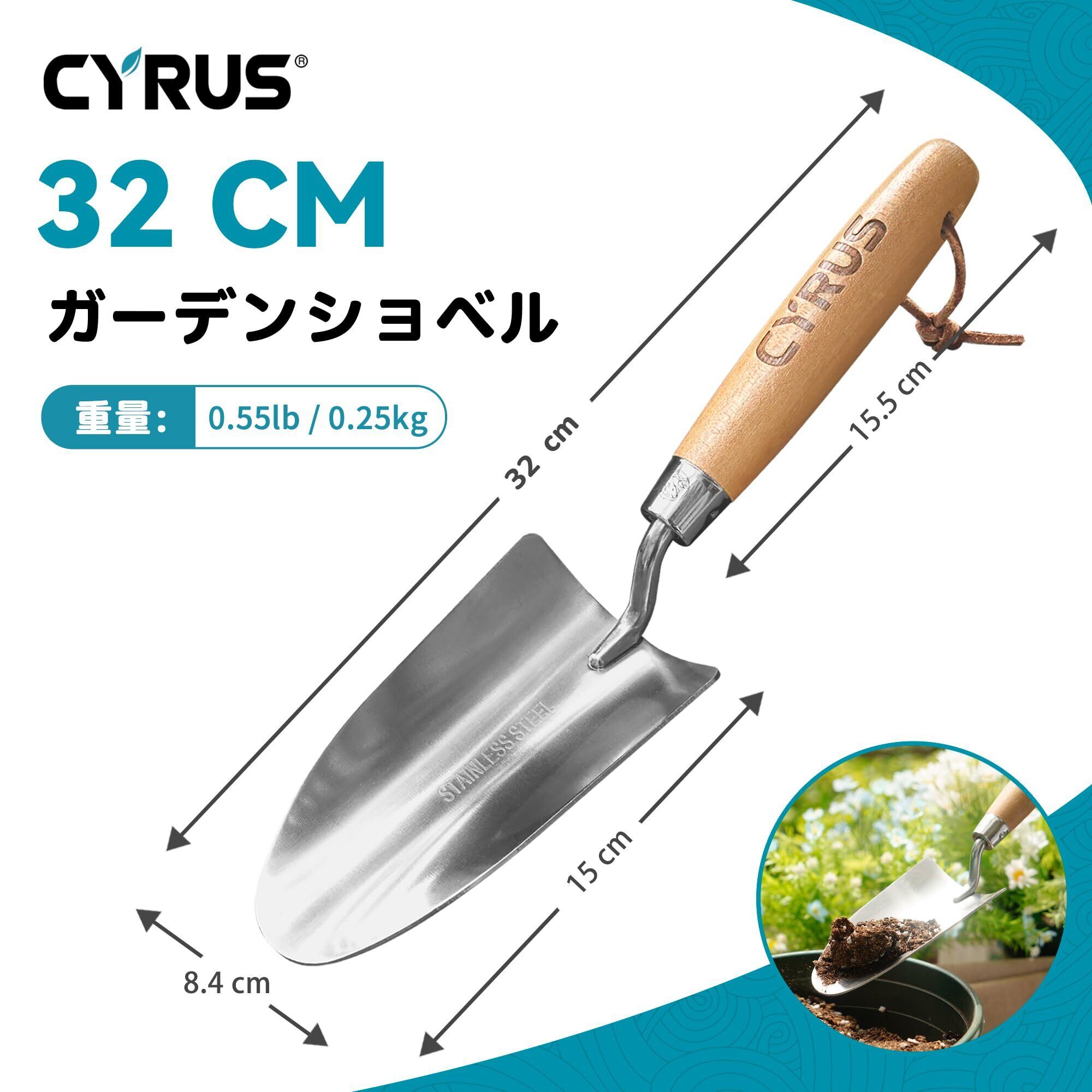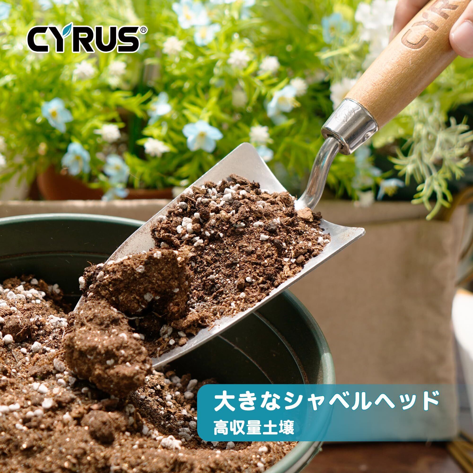 【数量限定】CYRUS 園芸 シャベル 植用スコップ ハンドスコップ 幅8.5cm ステンレス製 木製ハンドル
