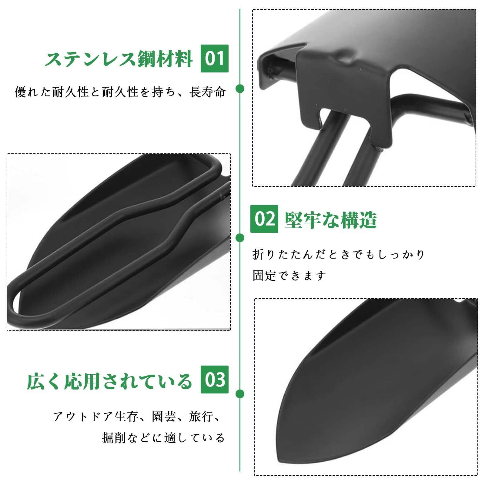 【限定セール】折り畳みシャベル 折りたたみスコップ ポータブルミニ折りたたみシャベル 園芸 折り畳み アウトドア 車用小型シャベル 多機能 草取り ステレオ鋼製 小型 保護ケース付(ブラック)