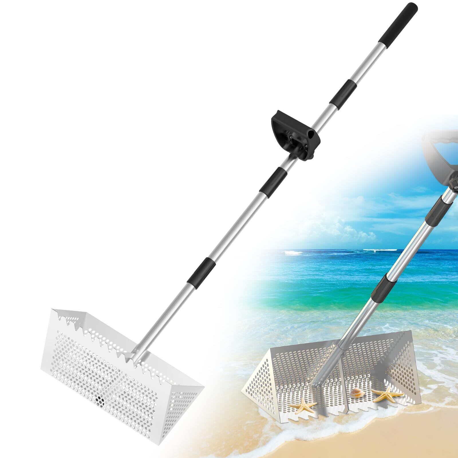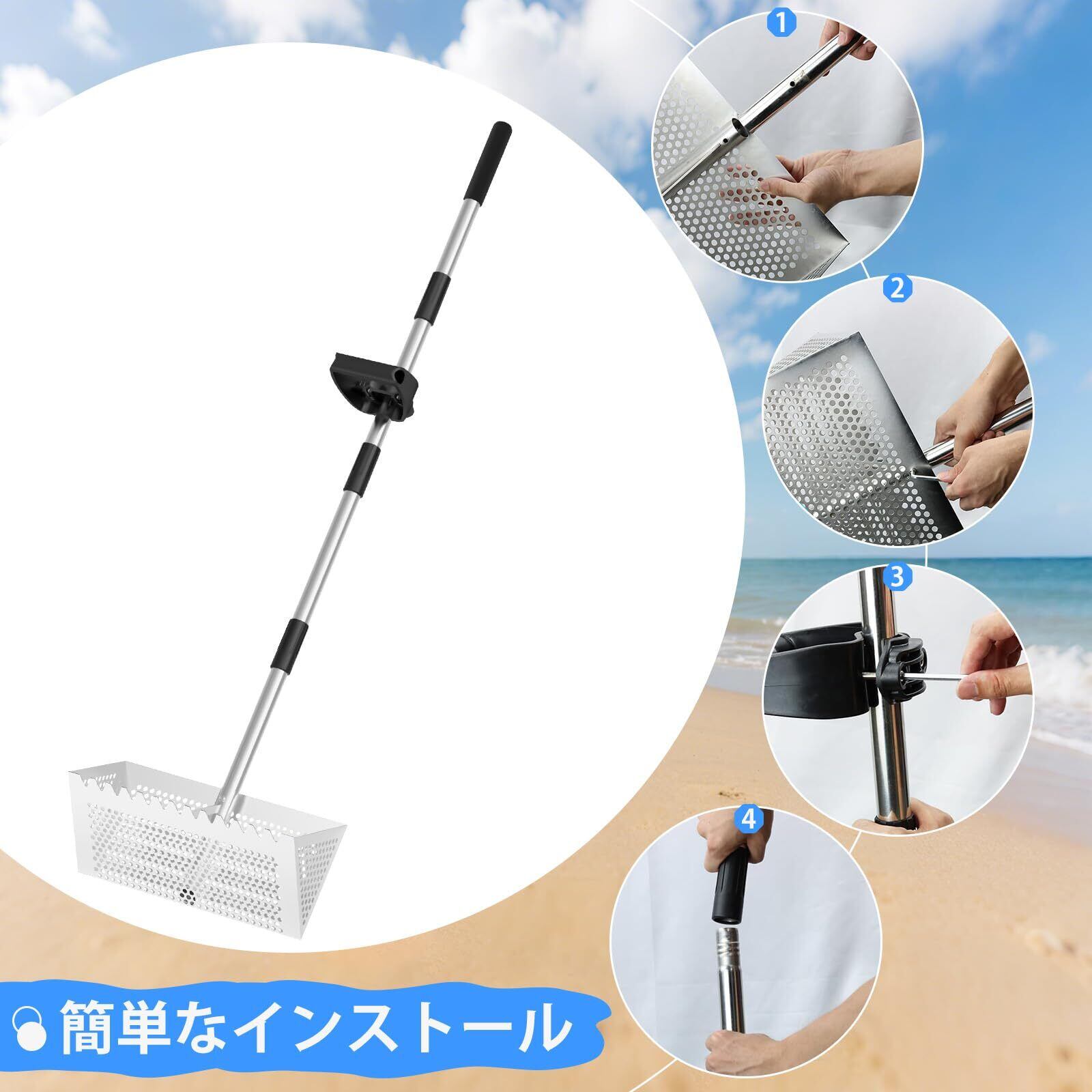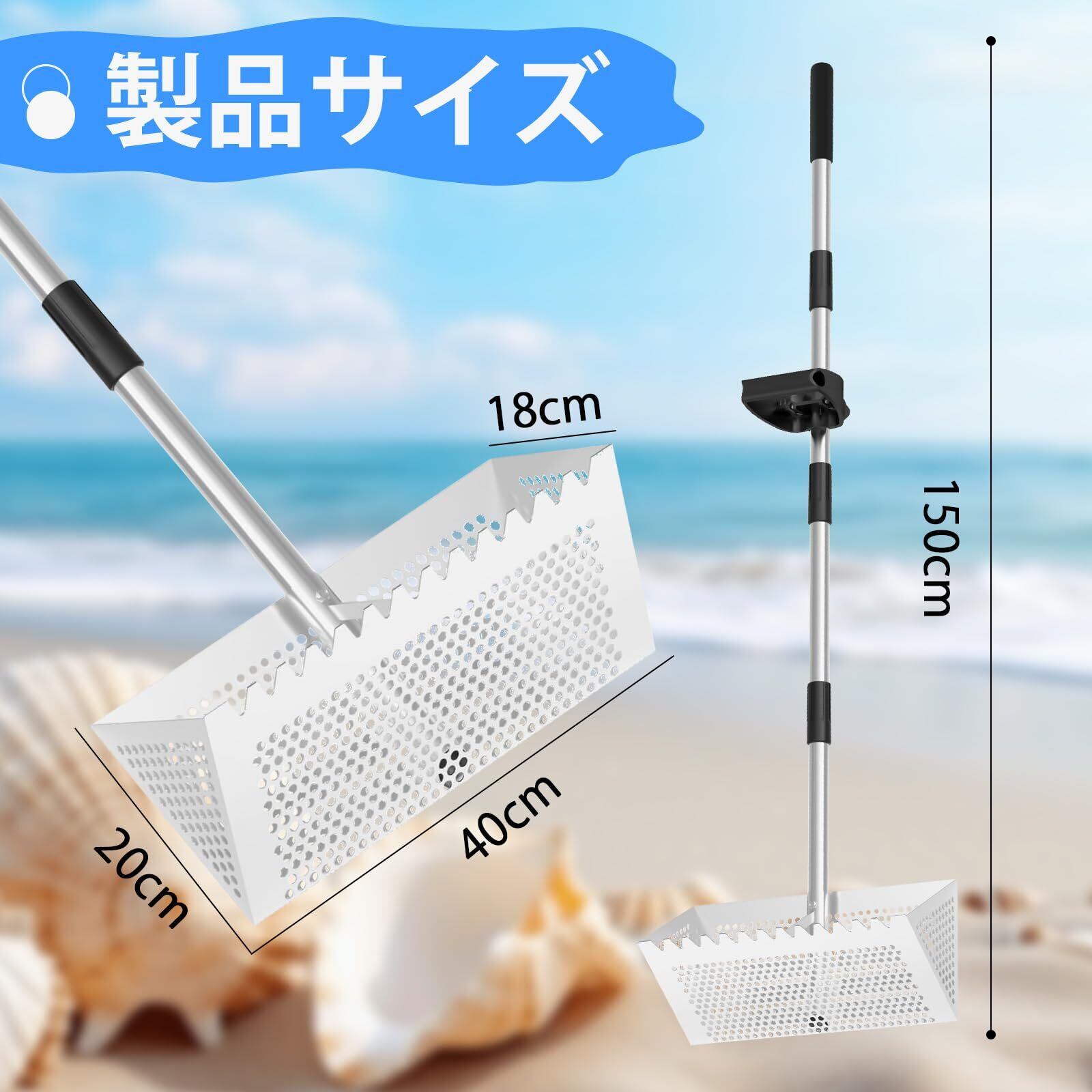 【多機能設計】砂シャベル、砂ふるい、サメの歯ふるいを一体化し、お客様のさまざまなニーズに満足できます。砂を掘ったり、貝殻をふるいにかけたりする場合に、このツールがあれば作業/遊びが楽になります。プロの漁業者にとっても欠かせないツールです。