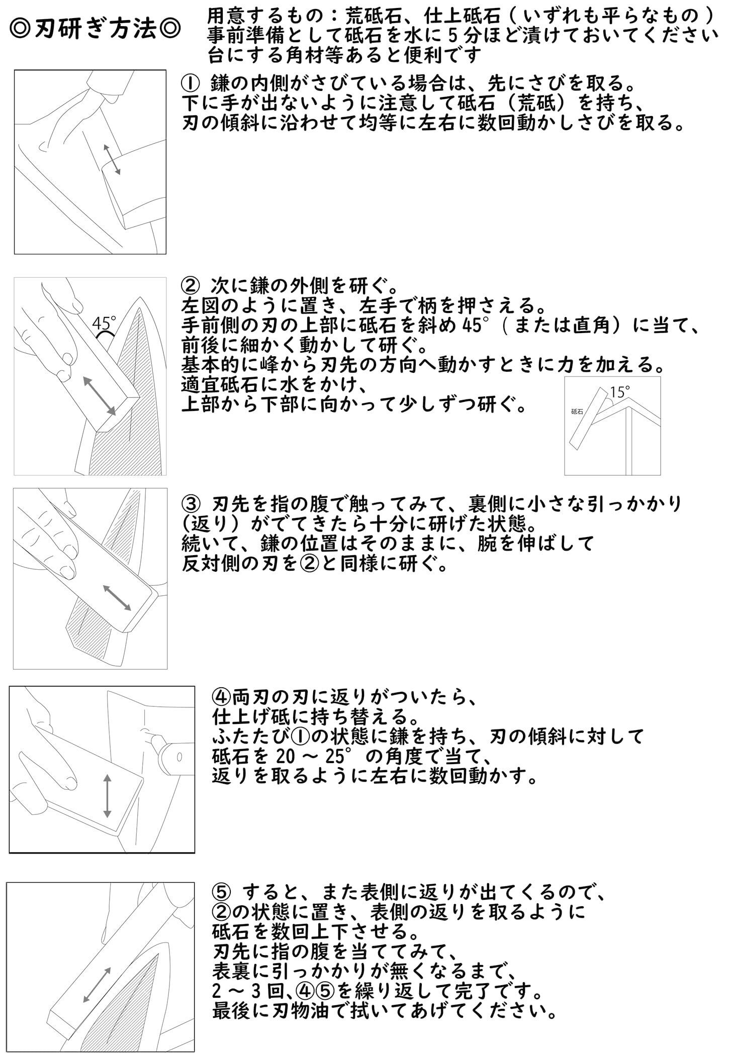 ●草を削る。●鎌の代用として。●三角形になっているので溝、条(すじ)をつけるなどの細かい作業ができます。●高級ハガネを使用し、完全焼き入れ、焼き戻しで切れ味、耐久性、作業効率抜群です。