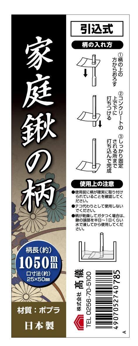 【特価セール】高儀(Takagi) 家庭鍬の柄 柄長約1050mm 口寸法約25×50mm 引込式 ポプラ 日本製