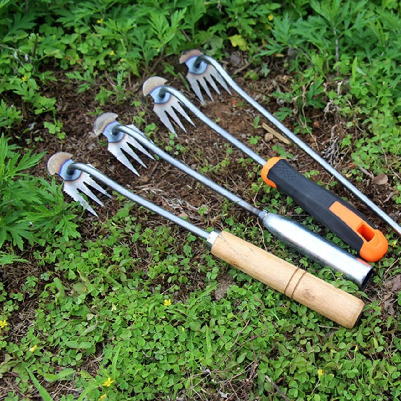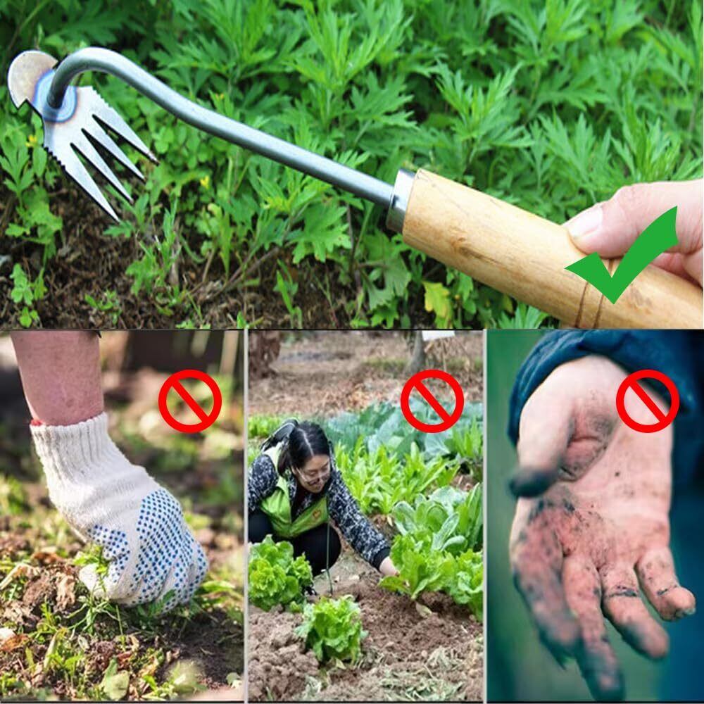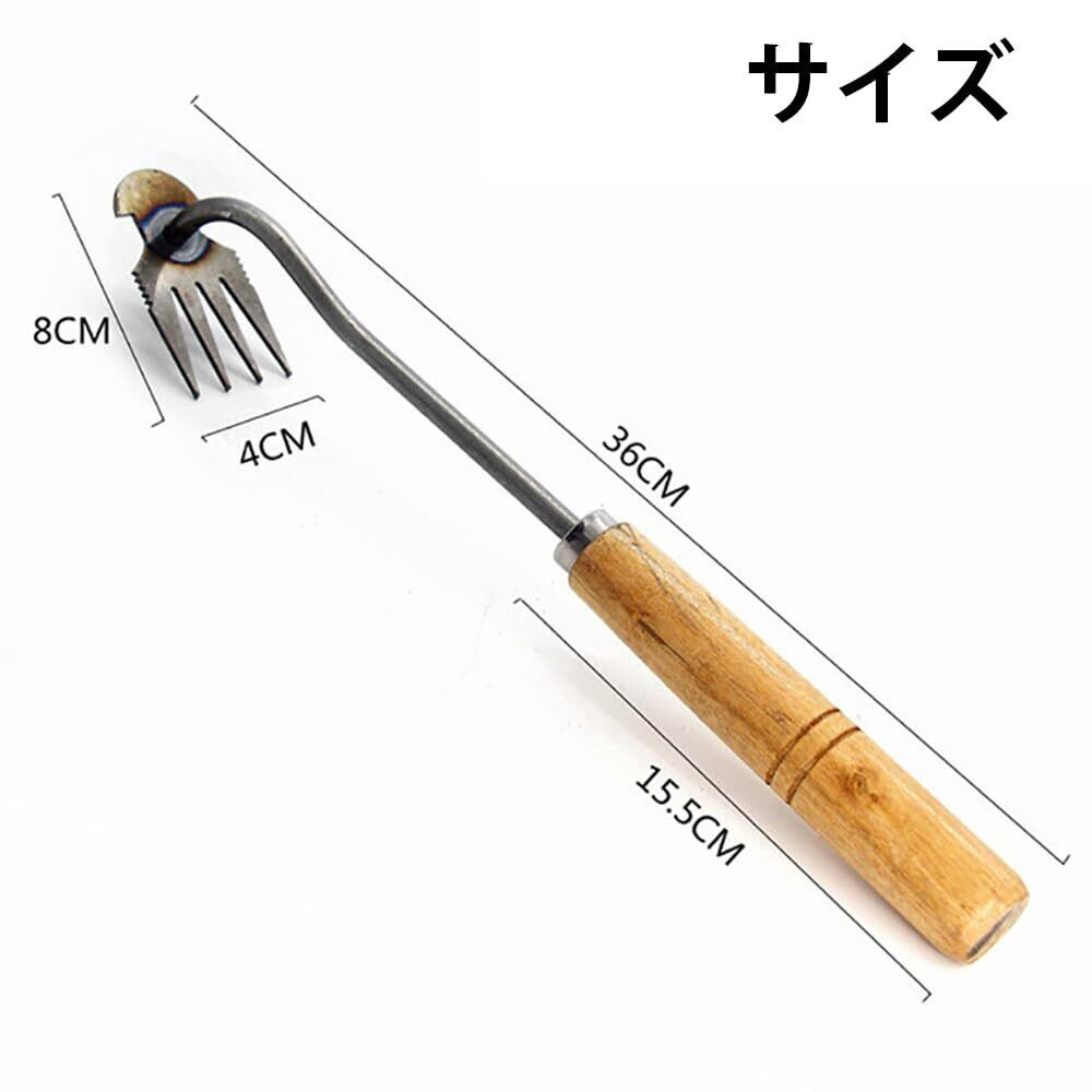 除草:このツールを使用すると、除草がより簡単かつ便利になり、狭いスペースでの除草が可能になり、4つの鋭い歯で雑草を簡単に取り除くことができます