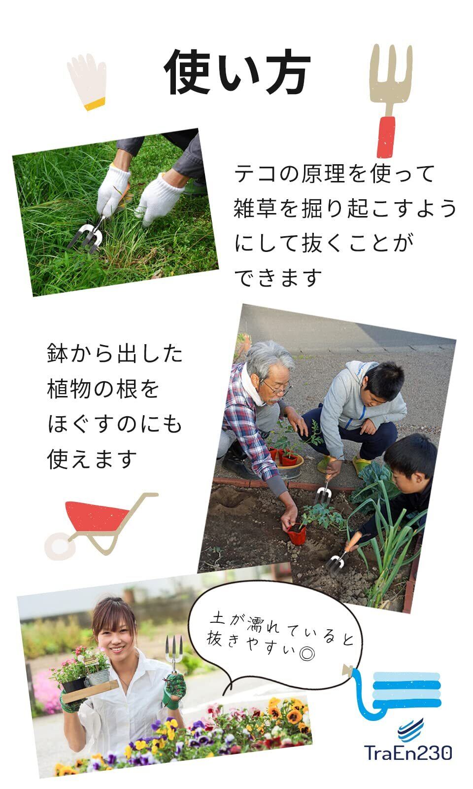 【製品概要】︎従来より幅広の三叉部分で楽々草取りが可能な大人気の根かき棒