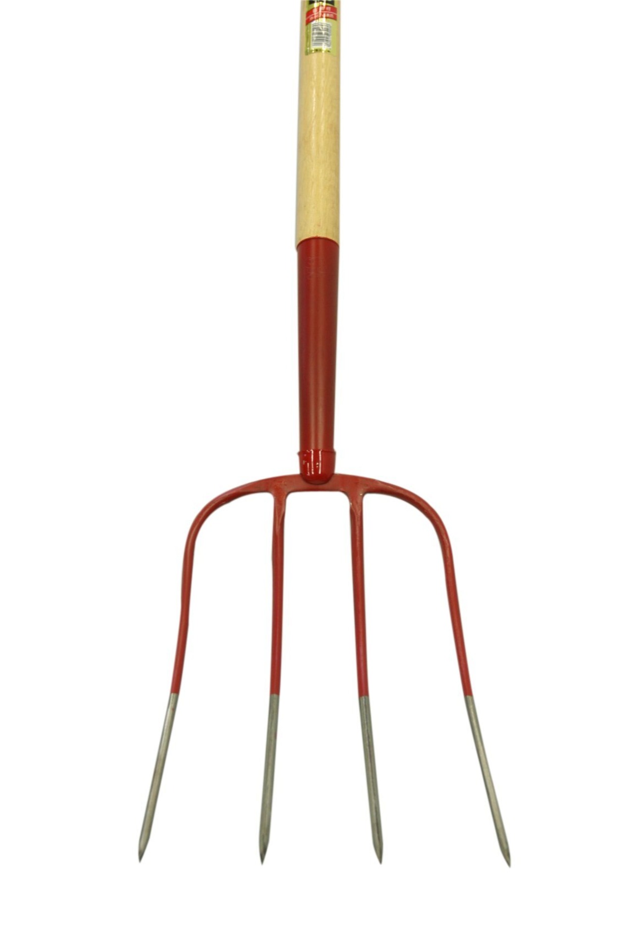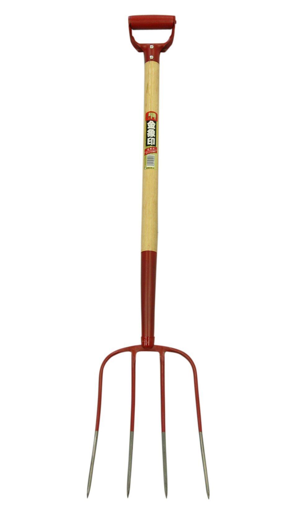 先爪はスチール製ワンピース(無溶接一体加工)4本爪タイプで木柄を採用し、かき寄せ、すくい作業用として最適です。