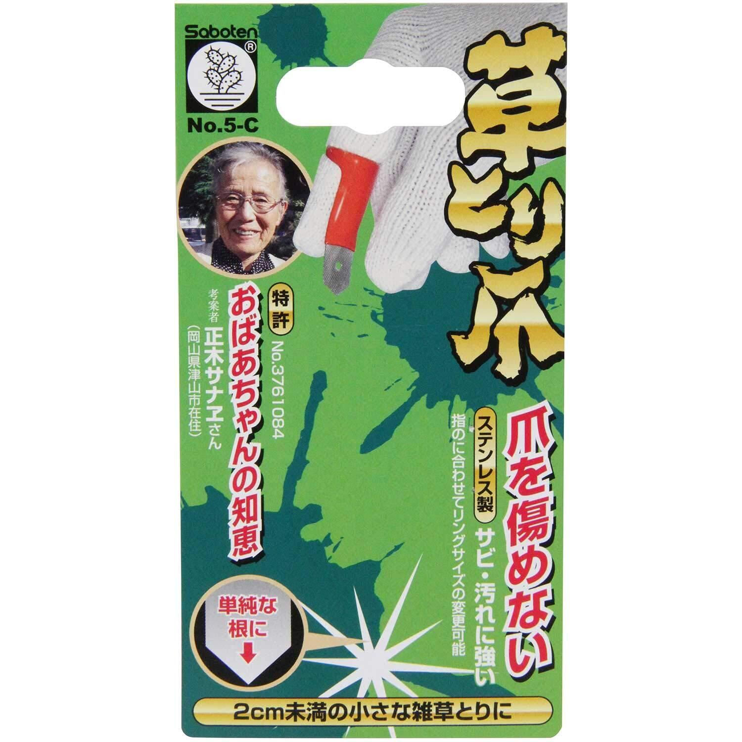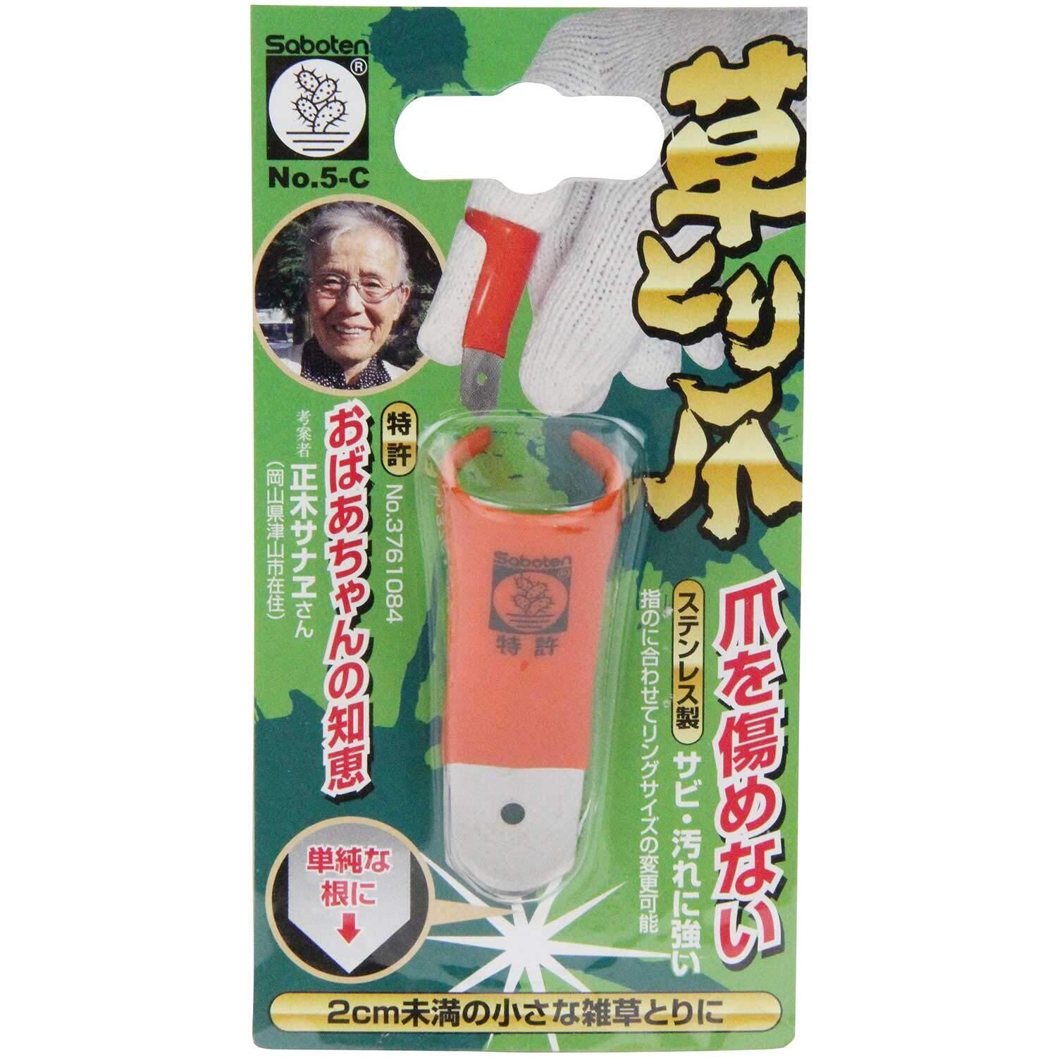●爪を傷めず小さな雑草を摘まんで抜き取ります。●【用途】●小さな草を摘まんで引き抜く草取りです。●【機能・特徴】●細かな雑草を摘まんで引き抜きます。●リングは指に合うよう調整できます。●根をおこす1山型。●【材質】●ステンレス鋼 SUS420J2。●TPR樹脂。●【商品サイズ】幅22×高さ55×奥行22mm 重量8g●商品コード:4976365500430●JANコード:4976365500430●ブランド名:サボテン●商品名:草取り爪 1山型●規格:5C