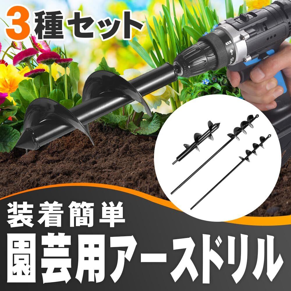 【2025最新】穴堀り用アースドリル 3サイズセット アウトドア DIY 負担軽減 杭打ち 農場 園芸 ガーデニング