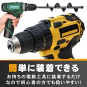 庭いじりに掛かる時間を短縮できるアースドリルです。杭打ち・フェンス設置・樹木の植え替え・苗の植え込みなどの下準備として土に穴を開ける際に重宝します。