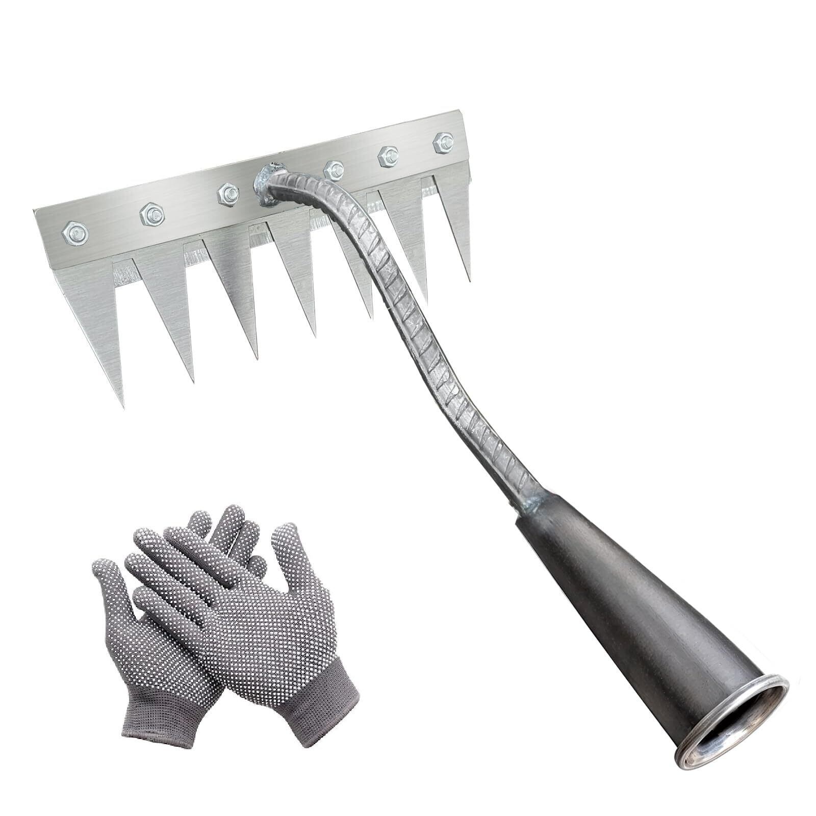【在庫限り】雑草ブラシ 草取り道具 除草レーキ 草取り 農業用多機能熊手 雑草スナッチャー 雑草抜きツール 手動で効率的に雑草抜き 庭園用雑草刈りツール 園芸用品 雑草取り器具 (7 歯)