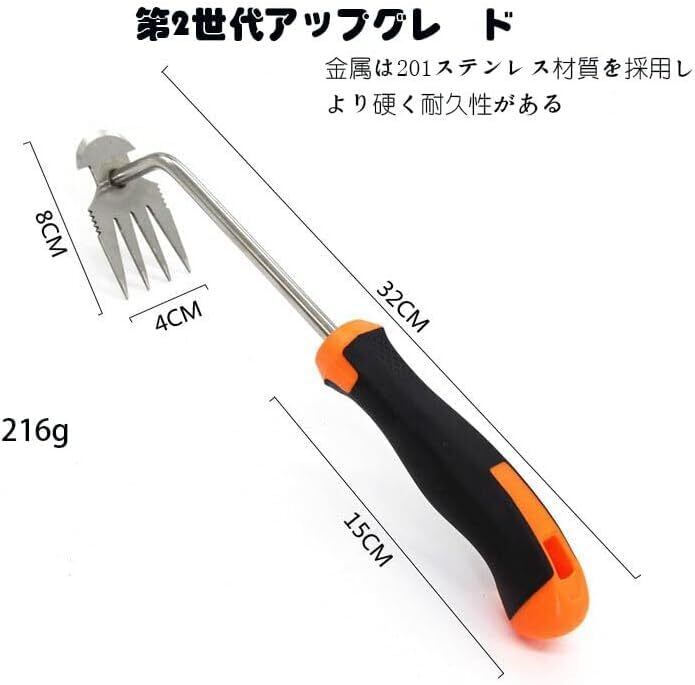 【簡単な除草】このツールは、狭くて手の届きにくい場所の雑草を取り除くのに役立ちます。 4本の鋭い歯を草の根元近くの土に押し込んで引っ張るだけです。また、土の表面を砕いて排水を良くします。非常に使いやすく効率的です。
