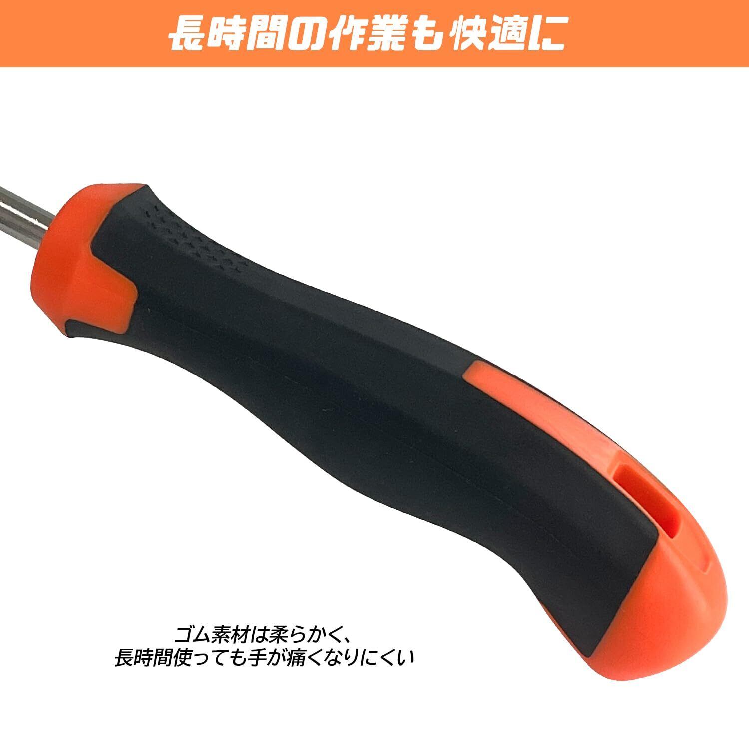 【ゴム製ハンドル】3本すべての道具には、人間工学に基づいたゴム製ハンドルを採用。握った時にしっかりと手にフィットし、作業中の滑りを防ぎます。ゴム素材は柔らかく、長時間の使用でも手が痛くなりにくい仕様。また、汗や湿気による滑りも軽減し、どんな環境でも安定した使い心地を提供します。