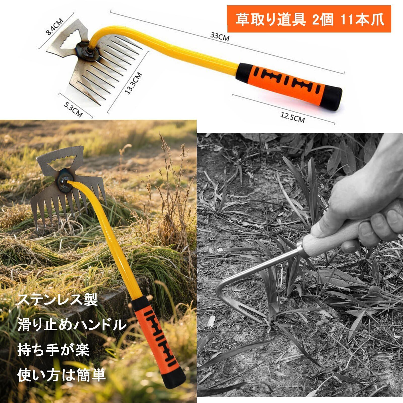 草取り道具 2個 11本爪 草削り 多機能 使いやすい 軽量 耐久性 雑草抜き 根こそぎ 庭/芝生/除草/園芸用ツール ゴム製ハンドル 草むしり 便利グッズ