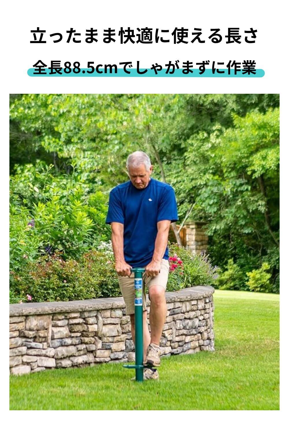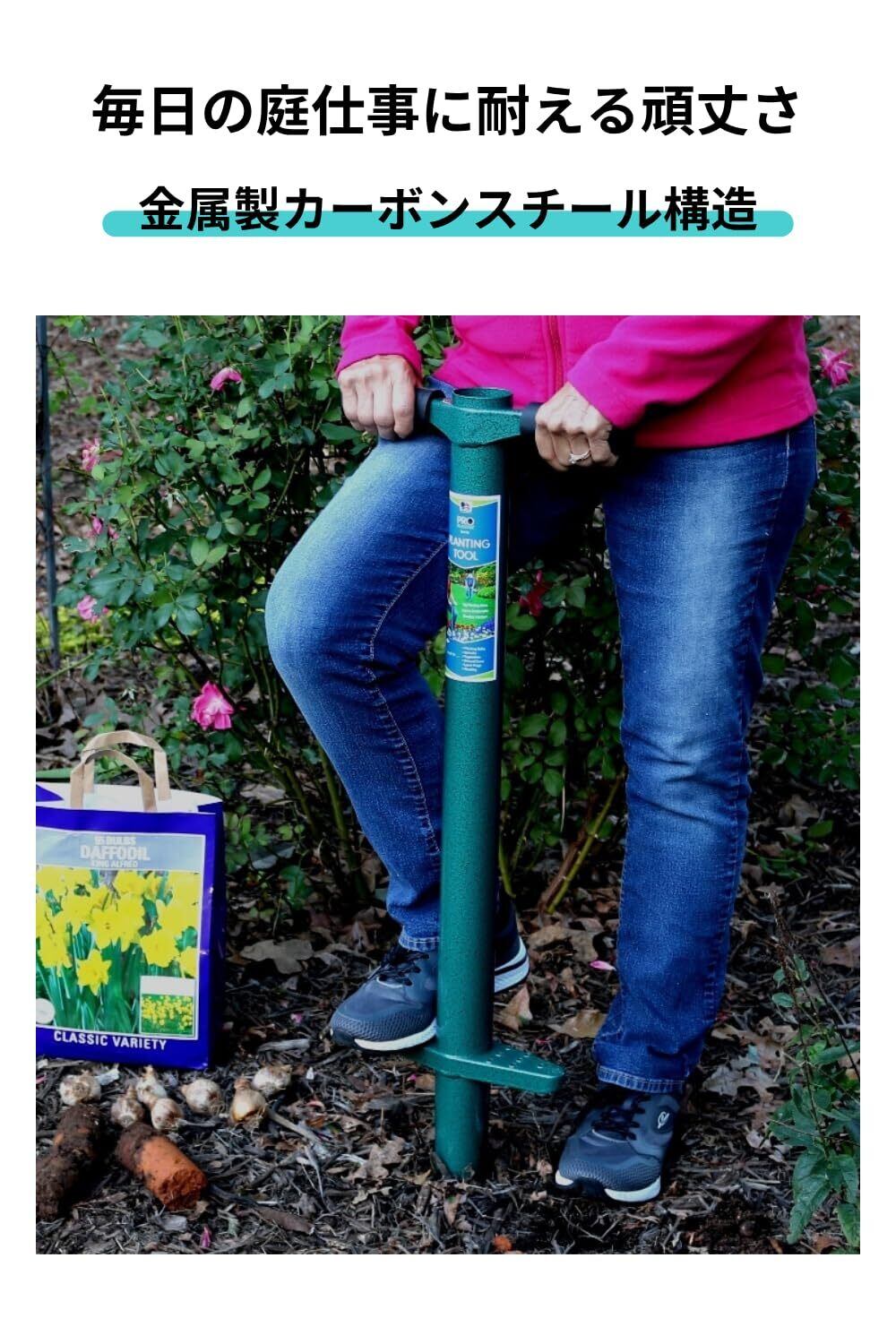 ProPlugger 5-IN-1 植栽ツールは、物置で埃をかぶる心配のないツールです。一年中使える:春と秋の球根用の長い柄の球根植え器。匍匐性の芝の植え付けや移植に使える芝生・芝用植栽ツール(セントオーガスチングラスには適していません)。野生のネギ、アザミ、タンポポなどの深い主根を持つ雑草の除草機。一年草、グランドカバー、野菜、フラットやトレイで販売されている植物の植栽ツール。土壌検査用の土壌サンプラーツール。また、樹木のドリップエッジ肥料ツールとしても最適です。耐久性のある全溶接カーボンスチール製で、粉体塗装仕上げの米国製です。