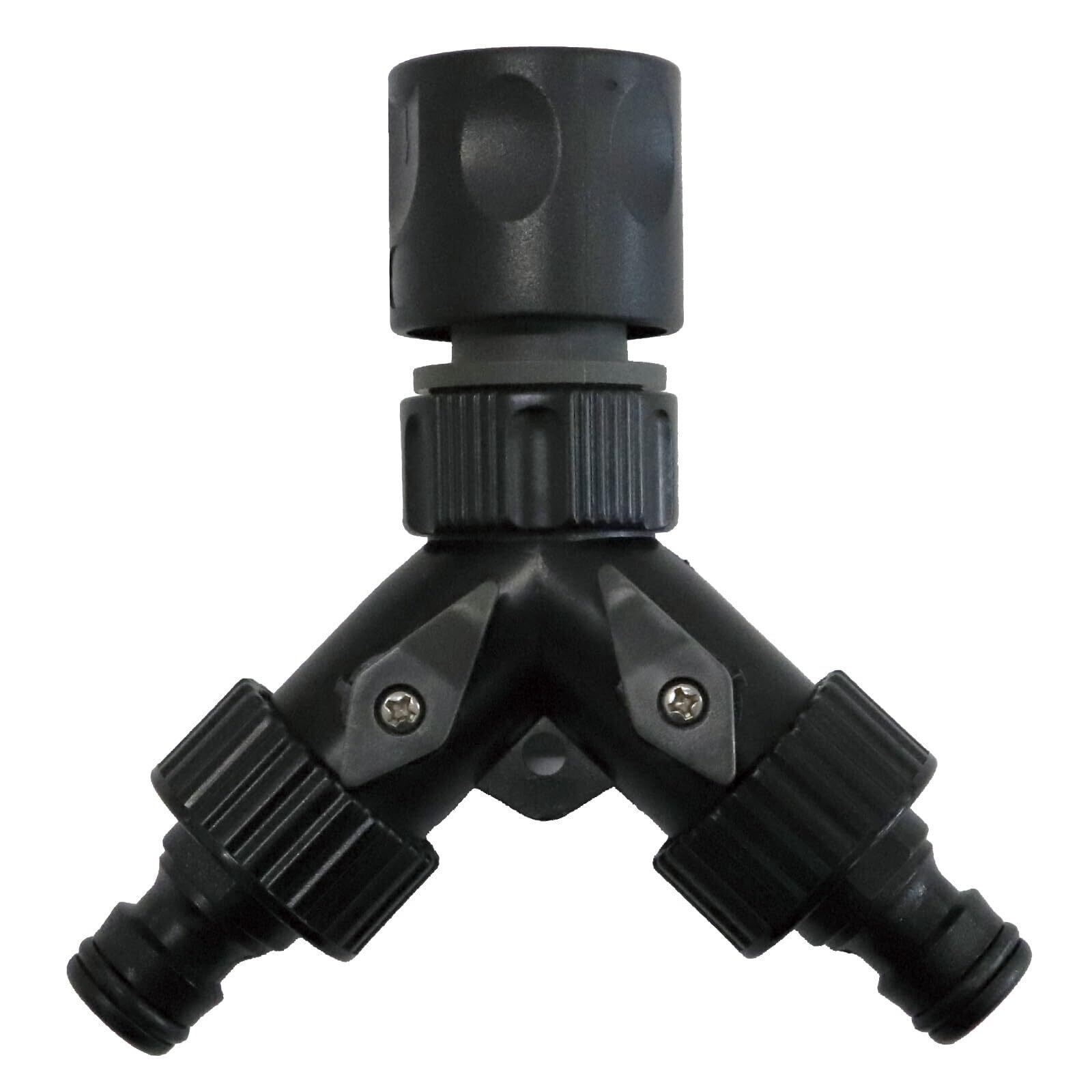 【2025最新】グリーンライフ コネクター ホース ジョイント 2分岐コネクター コック付 園芸 洗車 ミスト 複数の用途に 水道水と純水 切替 ホースリール 高圧洗浄機 分岐 W11.2×D4×H11cm HC-05(BK/AGY)
