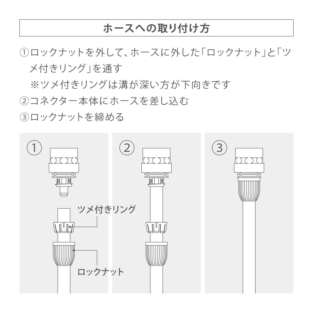 細ホース(内径7.5-9mm/外径13.5mm)に対応しています。