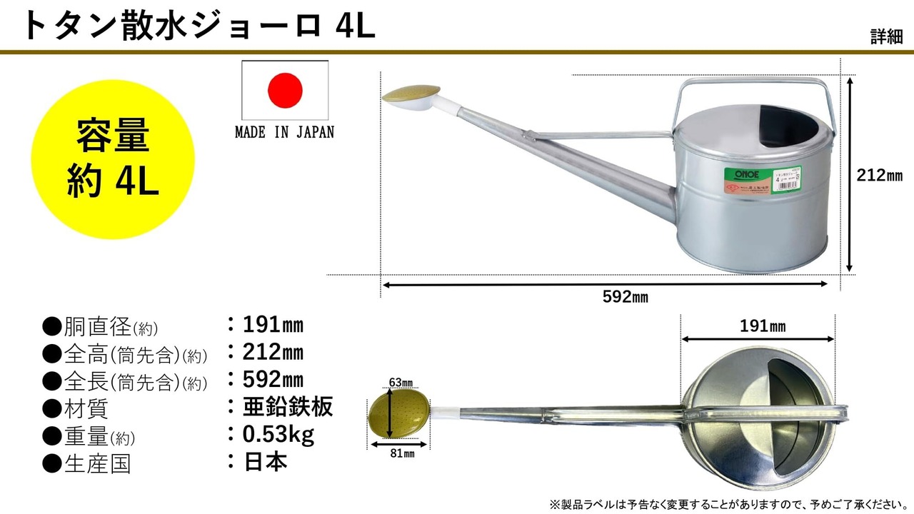 【在庫限り】尾上製作所(ONOE) ジョーロ 屋外使用可能 丈夫なトタン製 安定した散水がおこなえる ガーデニング 水やり 花壇 フラワー 栽培 日本製・萬年