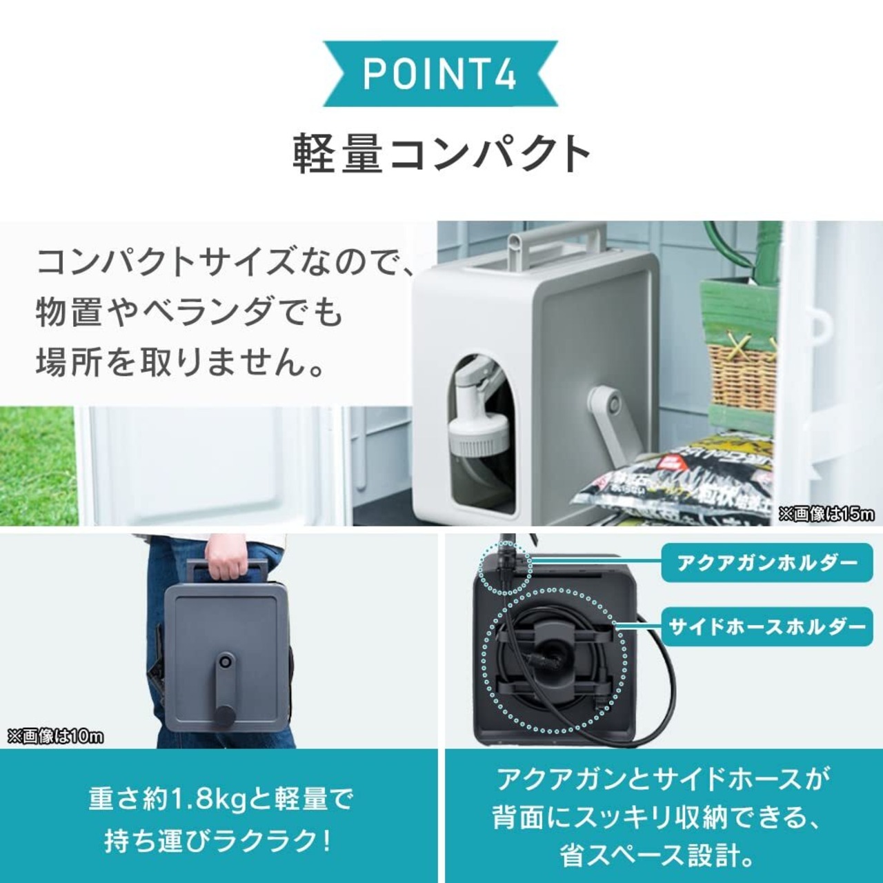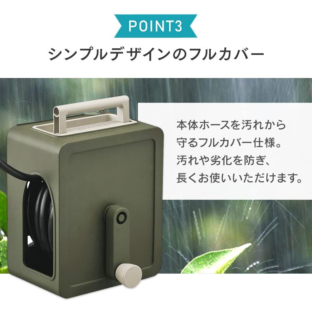 シンプルなデザインと安定性のフルカバーコンパクトホースリール。