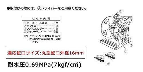 【適合ホースサイズ】内径12~15mmのホースを20m巻き取ることができます。