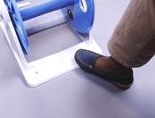 【ホースの巻き取りが安定する】本体に足踏みステップが付いているため、安定させてホースの巻き取りを行えます。