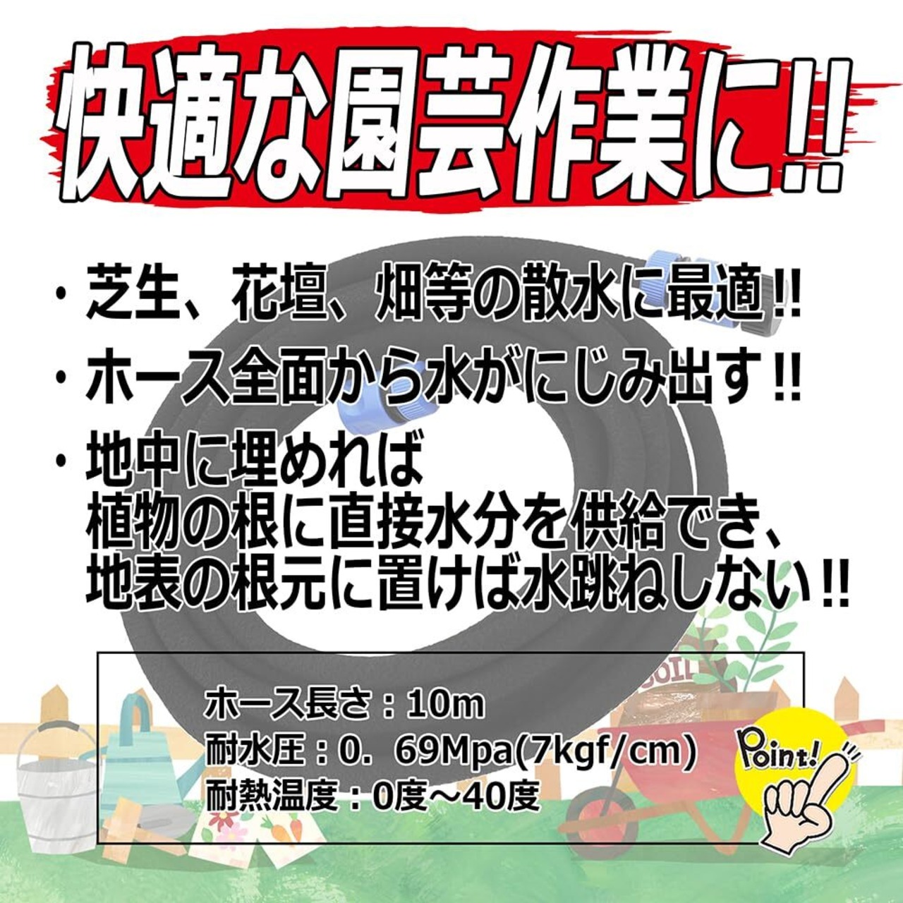 特徴:ホース全面より水がにじみだし散水