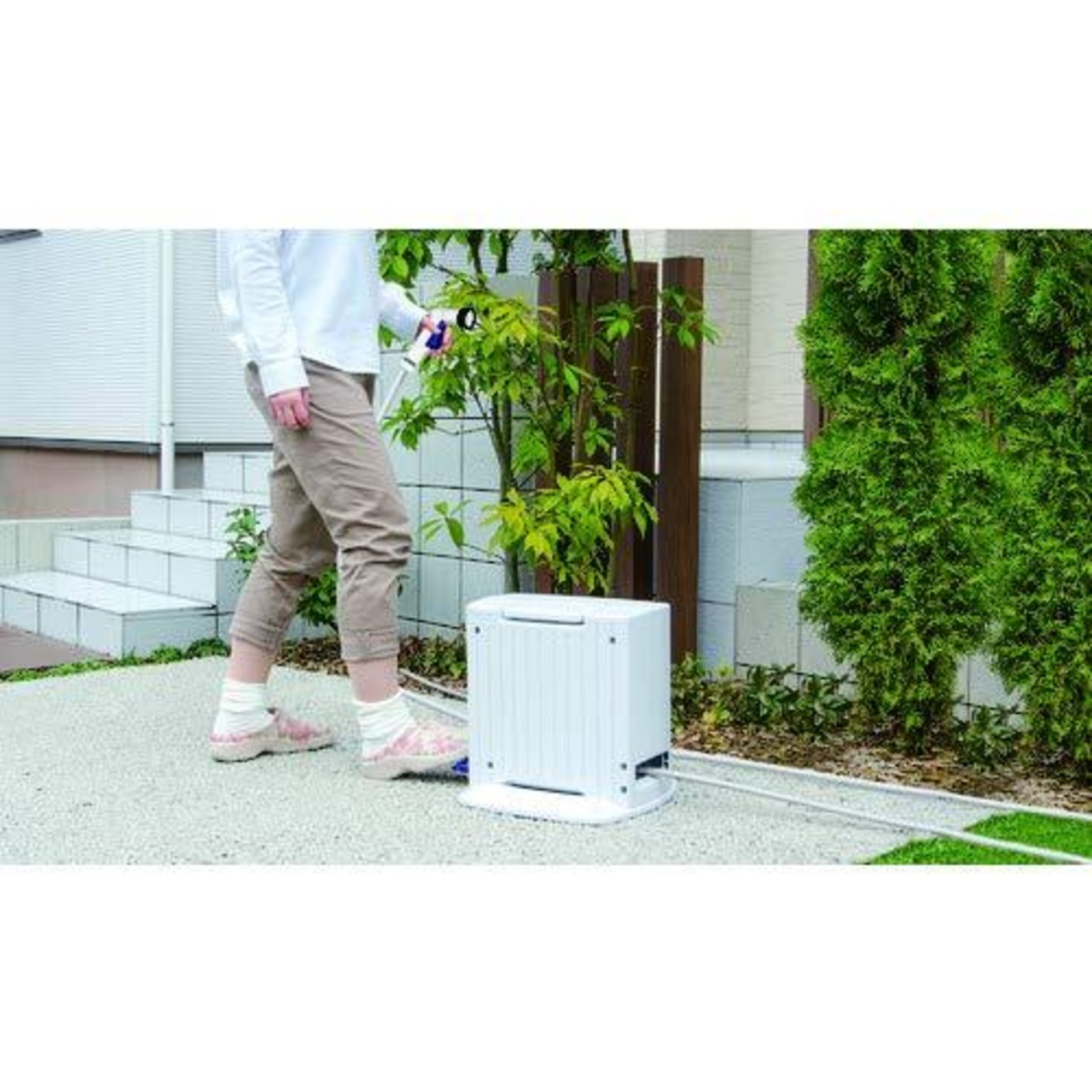 立ったままホースを巻き取れてます。