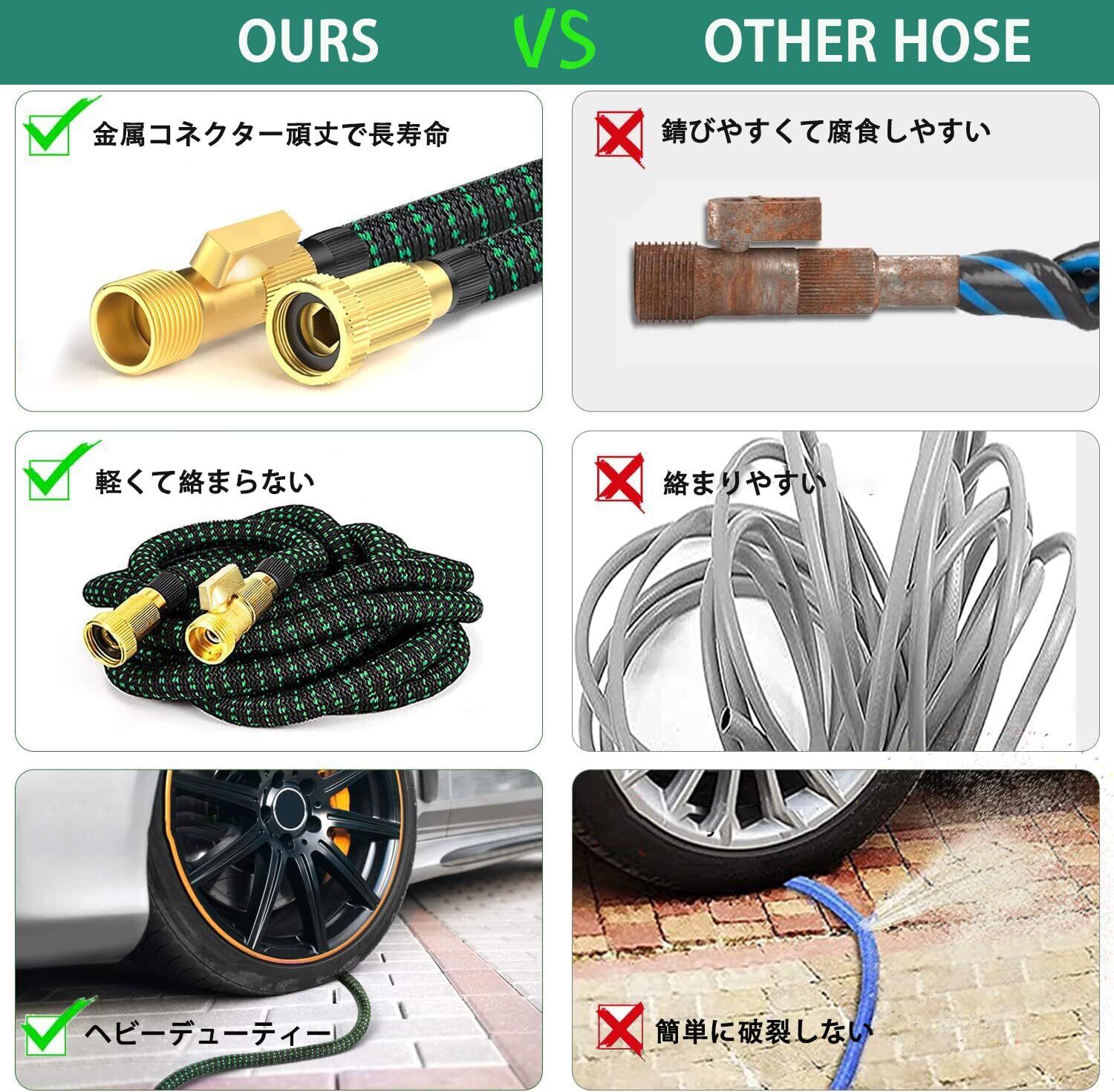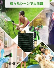 【改良された金属部品&優れた耐久性】当社の庭ホースは、両端に従来のプラスチック製コネクタではなく、頑丈な金属製コネクタにグレードアップ!強力な水圧にも全く負けず、長時間の使用や激しい水の流れにも耐え抜きます。また、錆びや腐食に対する耐性も抜群で、屋外の過酷な環境でも長期間にわたって美しい状態を保ちます。また、金属部品を使用しているにも関わらず非常に軽い散水ホースです。お年寄りや子供でも使いやすい。 耐久性と軽量性を兼ね備えたホースです。