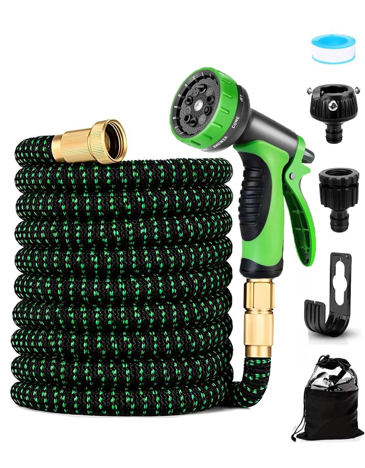 【在庫処分タイムセール】 伸びるホース 洗車ホース 伸縮散水ホース 3倍伸びる ホースリール 3750D高耐久設計 10in1 段階ノズル 水漏れ防止設計 耐久性 お庭の水やり ガーデン 水まき 園芸 花壇 ガーデニング 大掃除ペットのお風呂など 収納便利 収納袋&壁掛けフック付き (グリーン, 5mから15mまで)
