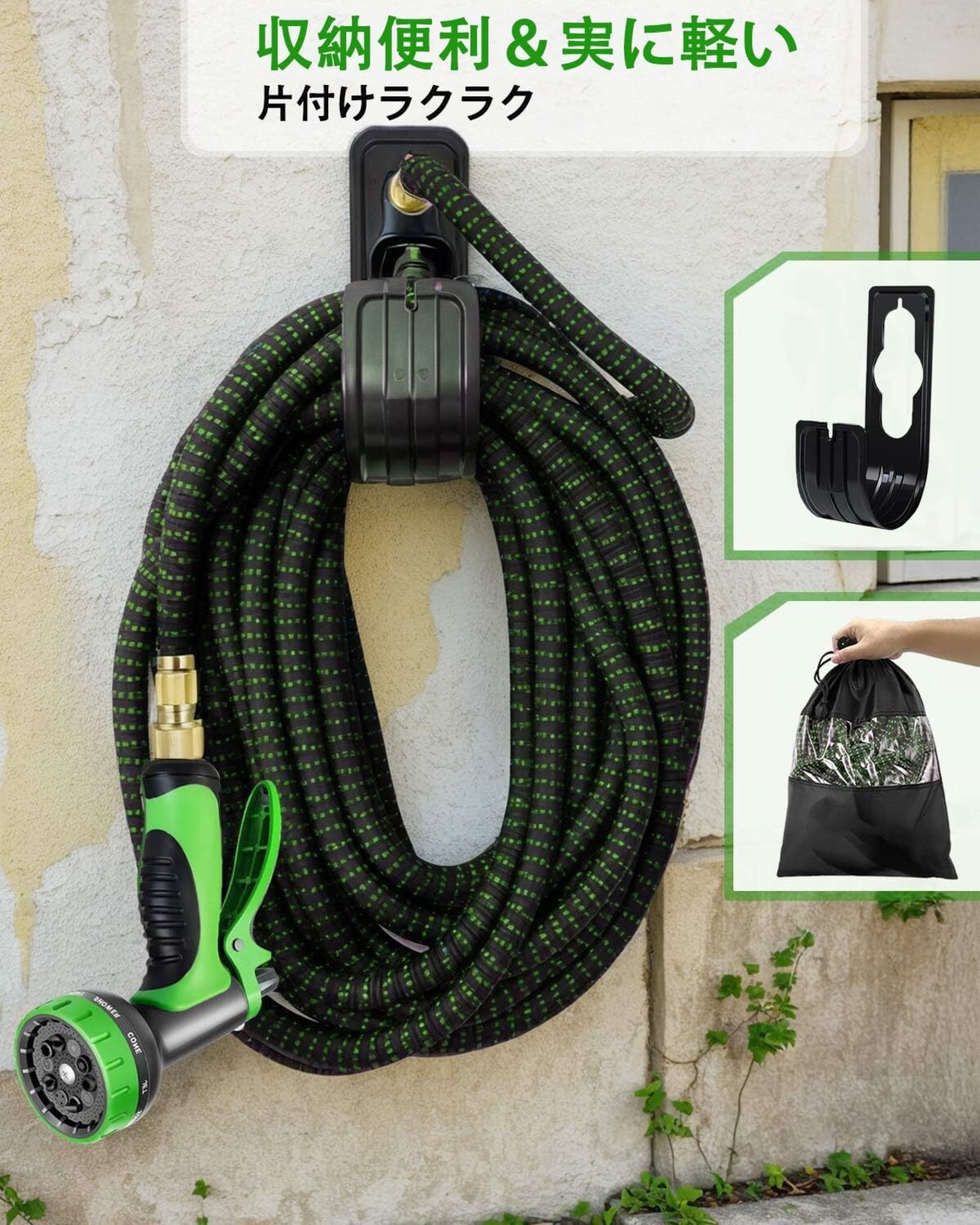 【数量限定】【在庫処分タイムセール】 伸びるホース 洗車ホース 伸縮散水ホース 3倍伸びる ホースリール 3750D高耐久設計 10in1 段階ノズル 水漏れ防止設計 耐久性 お庭の水やり ガーデン 水まき 園芸 花壇 ガーデニング 大掃除ペットのお風呂など 収納便利 収納袋&壁掛けフック付き (グリーン, 5mから15mまで)