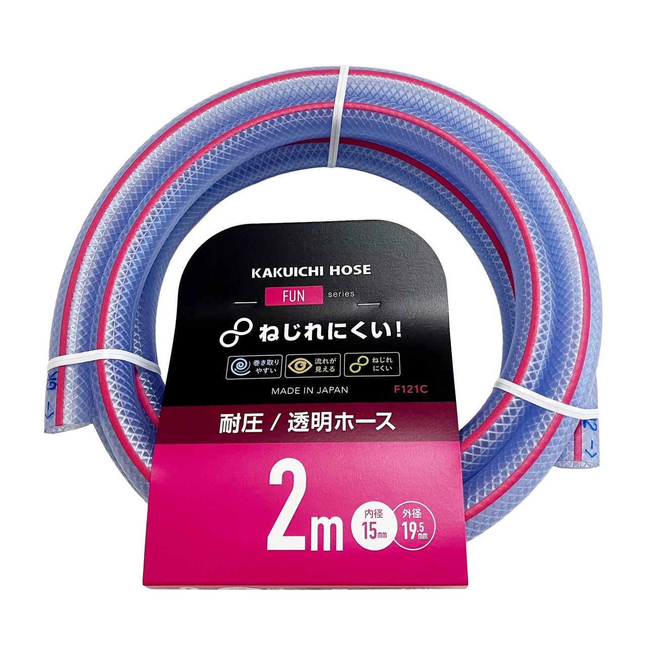 カクイチ 散水用ホース FUN クリアー+ピンクライン 内径15mm 2M F121C 892596