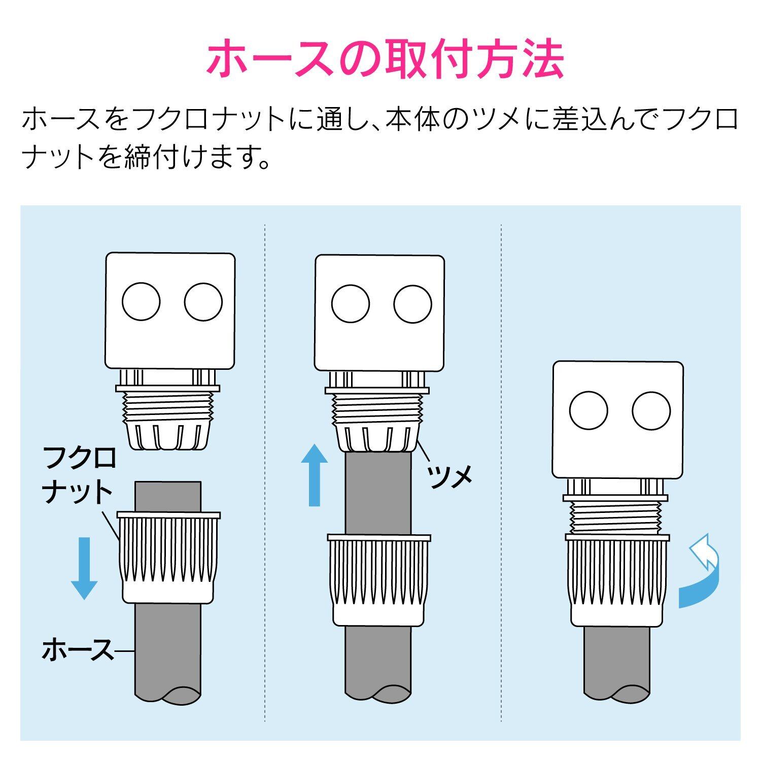・ホーセンドを使うと、ネジ口金や万能口金にワンタッチで接続ができる