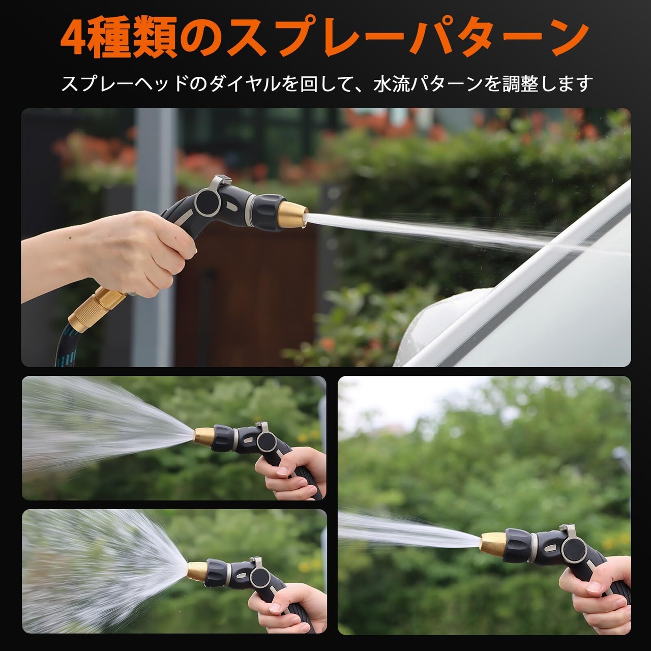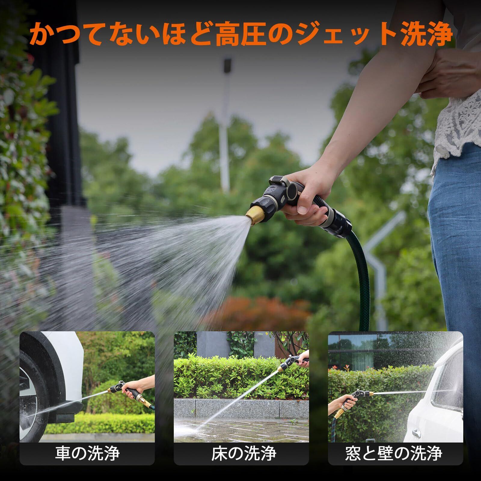 【幅広い用途で】庭、芝生、植物、洗車、ペットの入浴に使用できます。