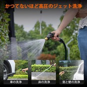 【高圧ホースノズルスプレー】JETモードの強力な水流で、従来のノズルよりもパワフルに洗浄可能。パティオや床、車の洗浄はもちろん、魚のウロコ取りも簡単です。また、花や植物の水やりに適したミストモード、車の洗車に便利なコーンモード、バケツの給水に最適なフルモードを搭載。