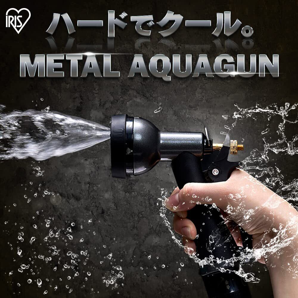 【特別価格】アイリスオーヤマ ホースリール パーツ 散水ノズル アクアガン ブラック メタルタイプ アクアメタルガン ガーデン 簡単水量調節 節水 MAG-7
