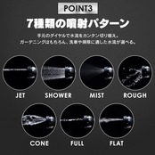 水流パターン:JET、SHOWER、MIST、ROUGH、CONE、FULL、FLAT