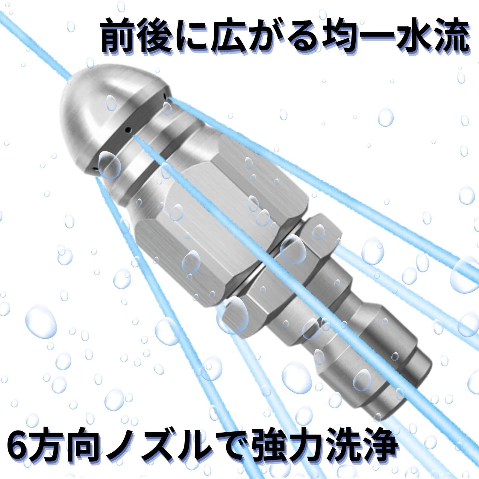 パワフルな性能: 高圧水流でパイプ内部を強力に洗浄し、頑固な詰まりを瞬時に解消。繰り返しの水噴射で隅々まで徹底的に洗浄します。