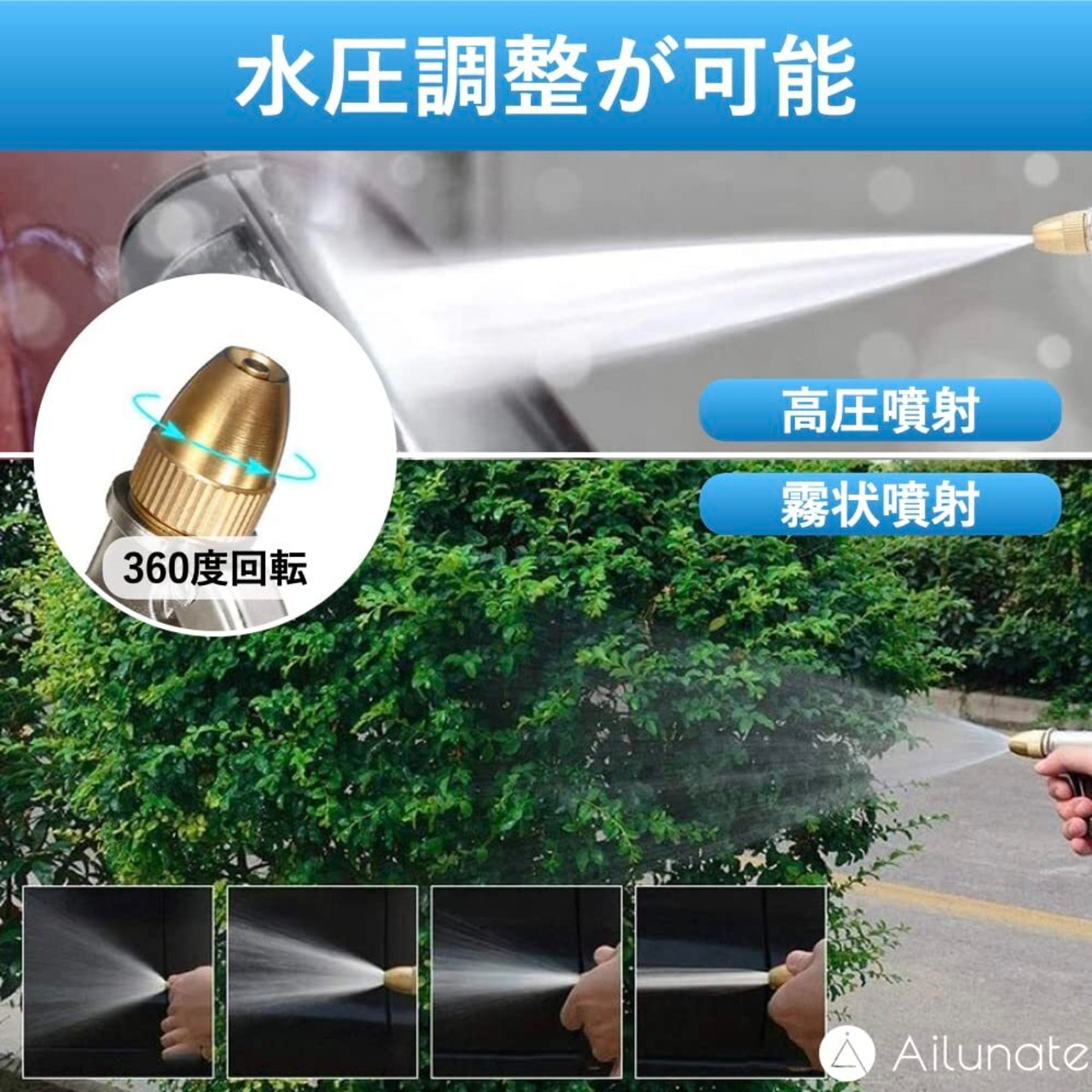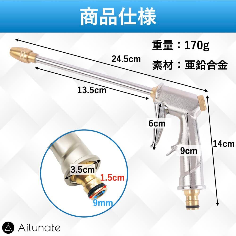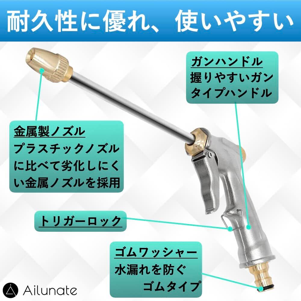 Ailunate 散水ノズル 金属 メタル 高圧 強力 ロング ヘッド 洗車 園芸 散水機 メタルガン