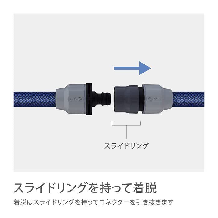 ナットを緩めてホースを差し込むだけ、コネクターにワンタッチでホースをつなぎます。
