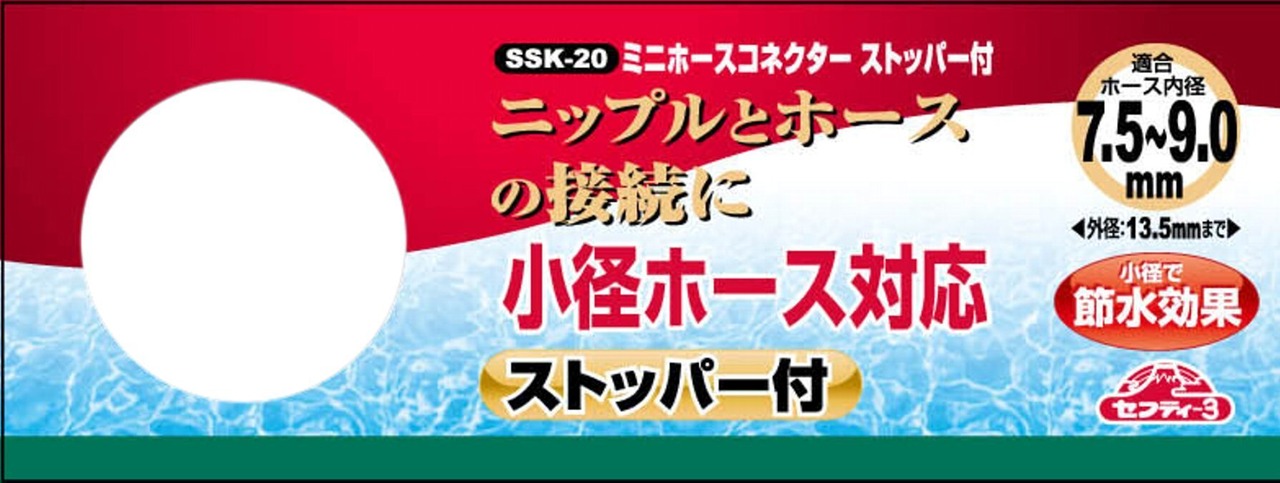 セフティー3(Safety-3) ミニホースコネクター 7.5mm~9.0mm 内径 ホース対応 ストッパー付 SSK-20