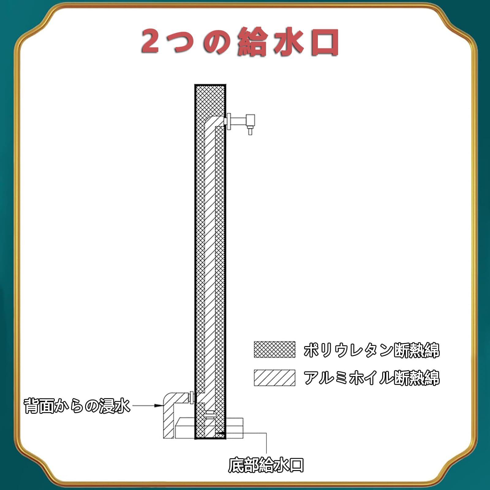√ ブラックステンレススチールコラム:当社の水コラムは304ステンレススチール製で、ステンレススチールインナーチューブが内蔵されています。 304ステンレス素材は高強度、耐熱性に優れた素材です。 断熱綿を使用したインナーチューブは、高温耐性、耐寒性、凍裂耐性があり、外部気候の変化や厳しい天候に耐えることができます。