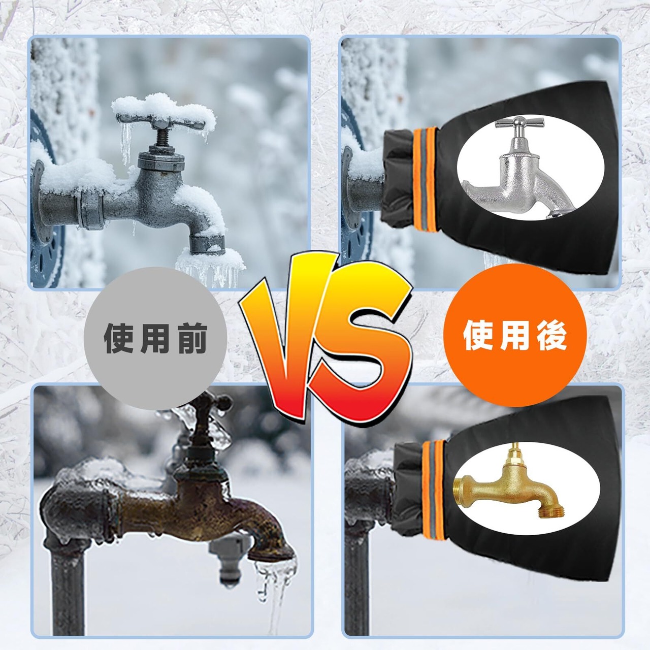 【三層構造】外は優れた420Dオックスフォードを採用し、防水と耐久性に優れています、中には高密度綿、保温性抜群です。有効的に屋外の蛇口凍結を防止します。