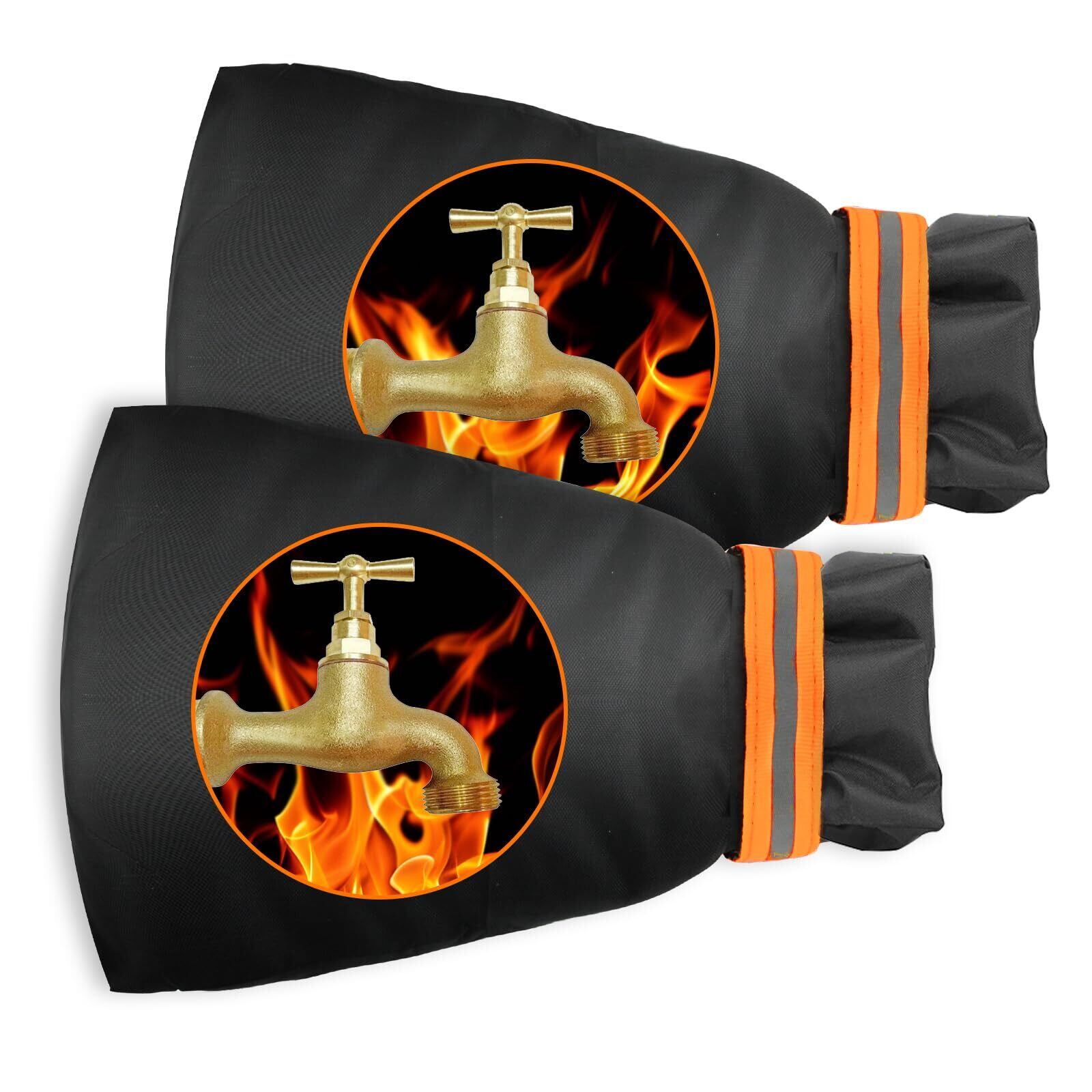【特価セール】蛇口カバー 水栓 凍結防止 水道管 冬 厚手 保温 防寒カバー 防水カバー 雨錆防止 反射条が付き 庭 屋外 散水用具保護 再利用可能 三層構造 (2枚セット, 14*19)