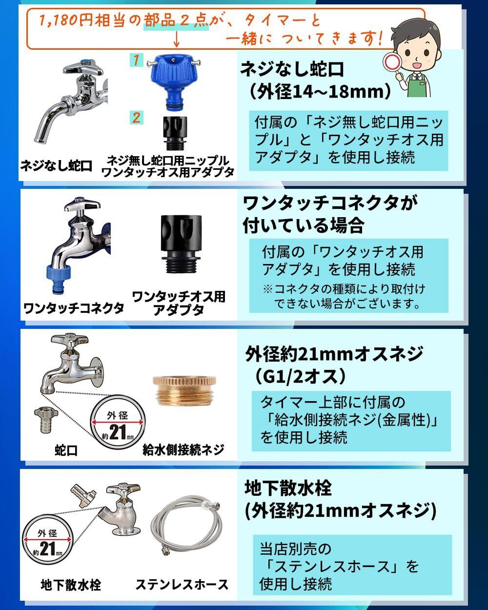 ※タイマーに付属する9mmホース接続用部品の色は画像と異なる場合がございます。予めご了承ください。