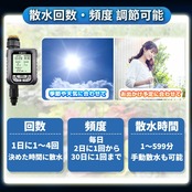 1日に1〜4回、設定した時間に散水可能です。散水時間は「0〜599分」、散水頻度は「毎日〜29日おき」まで設定できます。
