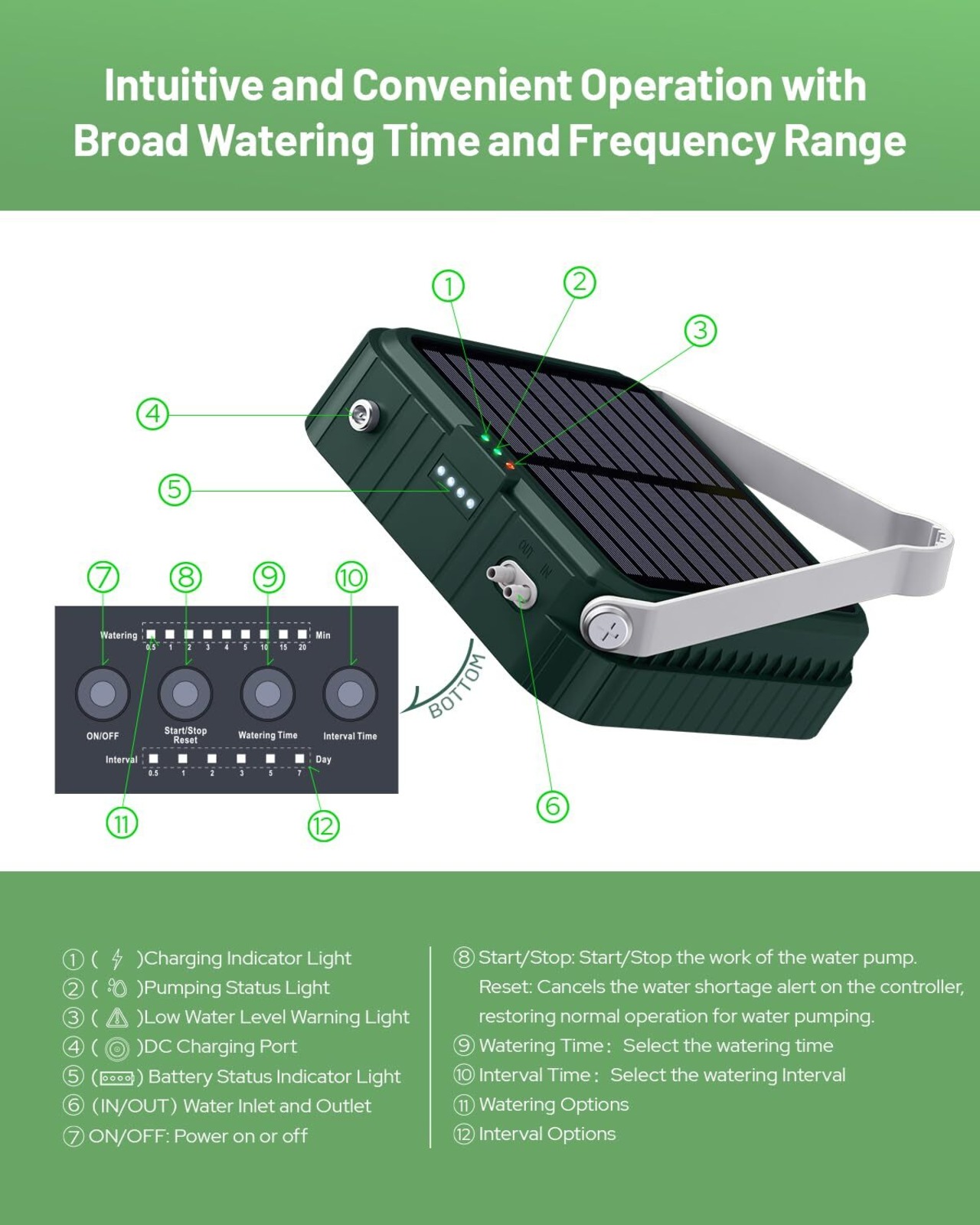 ソーラー自動散水機【省エネ・電気代不要】太陽光発電なので、昼間にソーラーエネルギ-で自動充電し、太陽エネルギーを電気に変換します。ソーラーパワーで自動給水、耐久性ももっと良くなりました。玄関やガーデンなどの屋外場所に大活躍です!