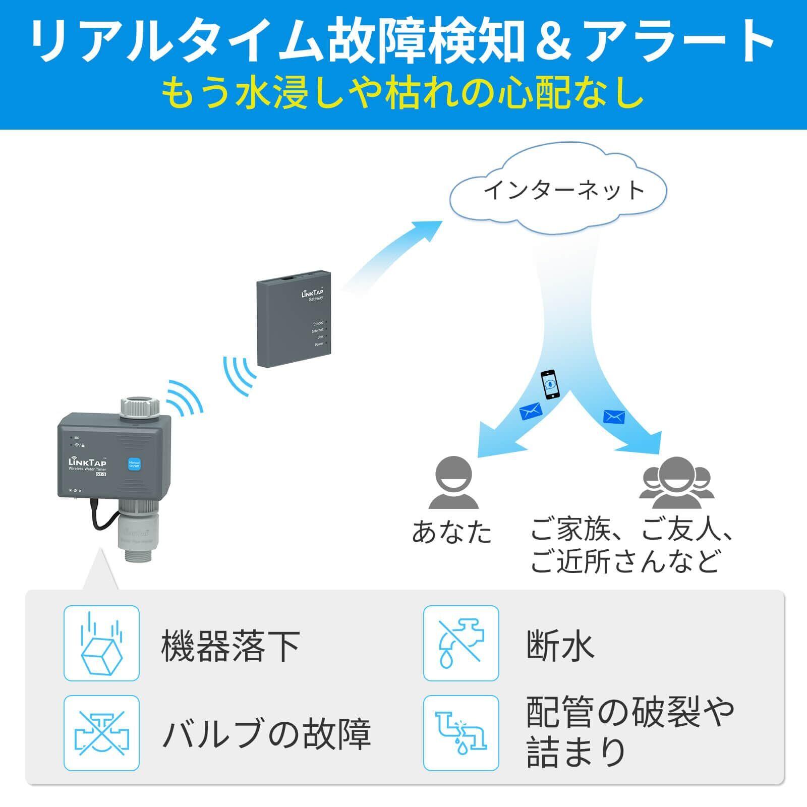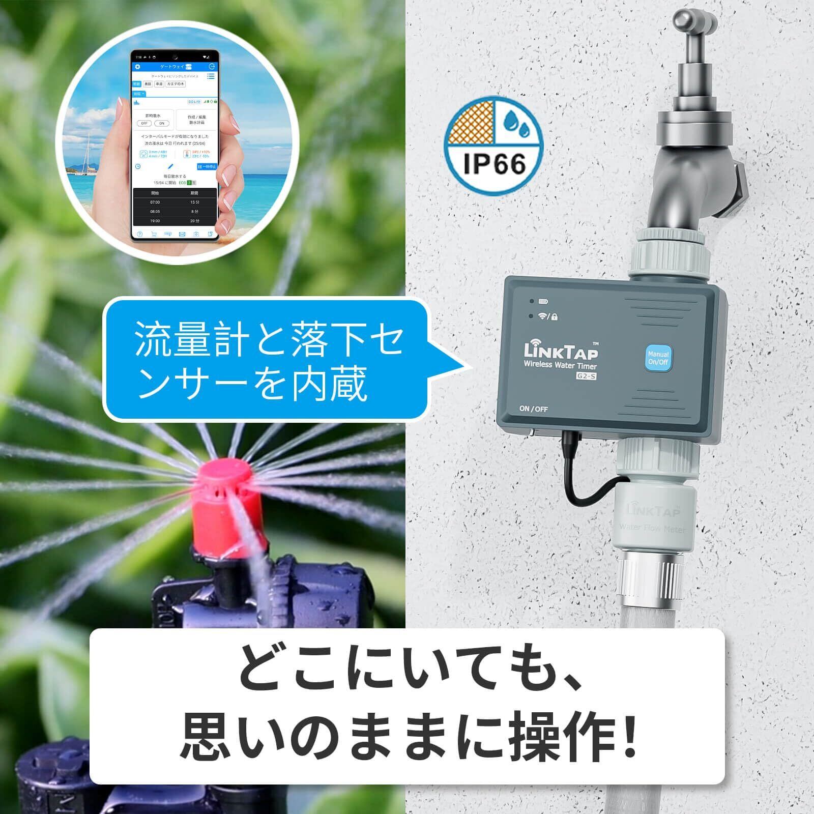 LinkTap G2S 無線自動散水タイマー|ゲートウェイ必須|天気・水量・時間による灌漑対応、故障の自動検知&アラート、スマート凍結防止機能、WiFiより広範囲、2年電池寿命、2年