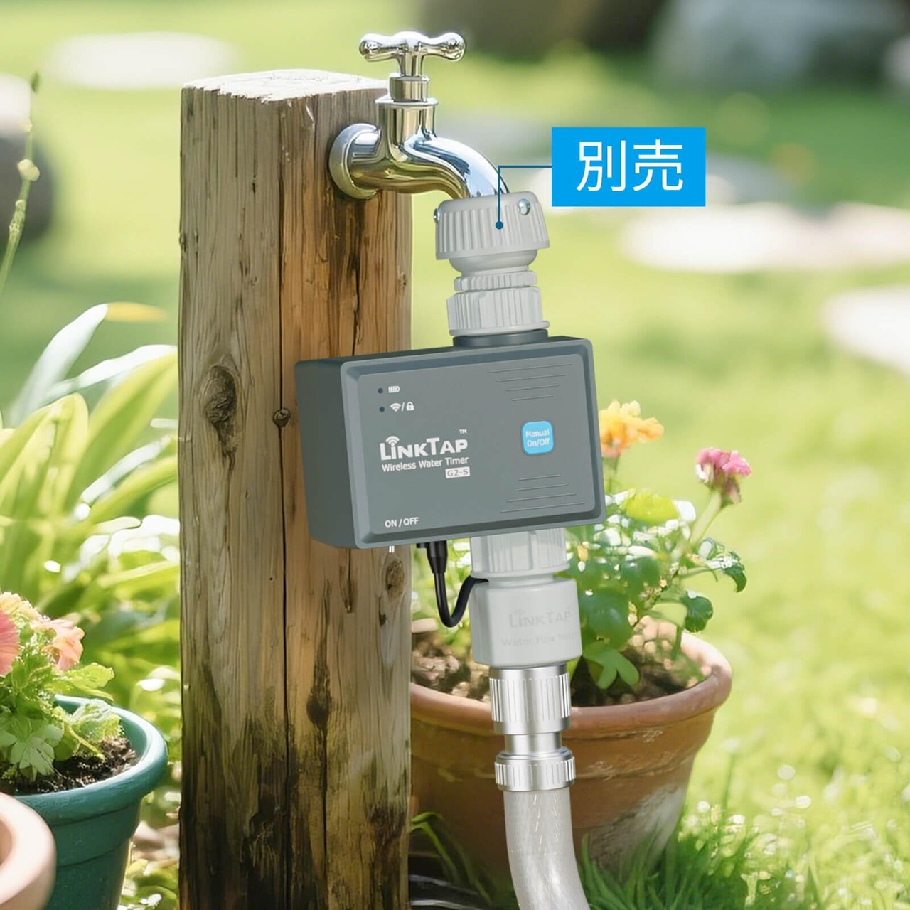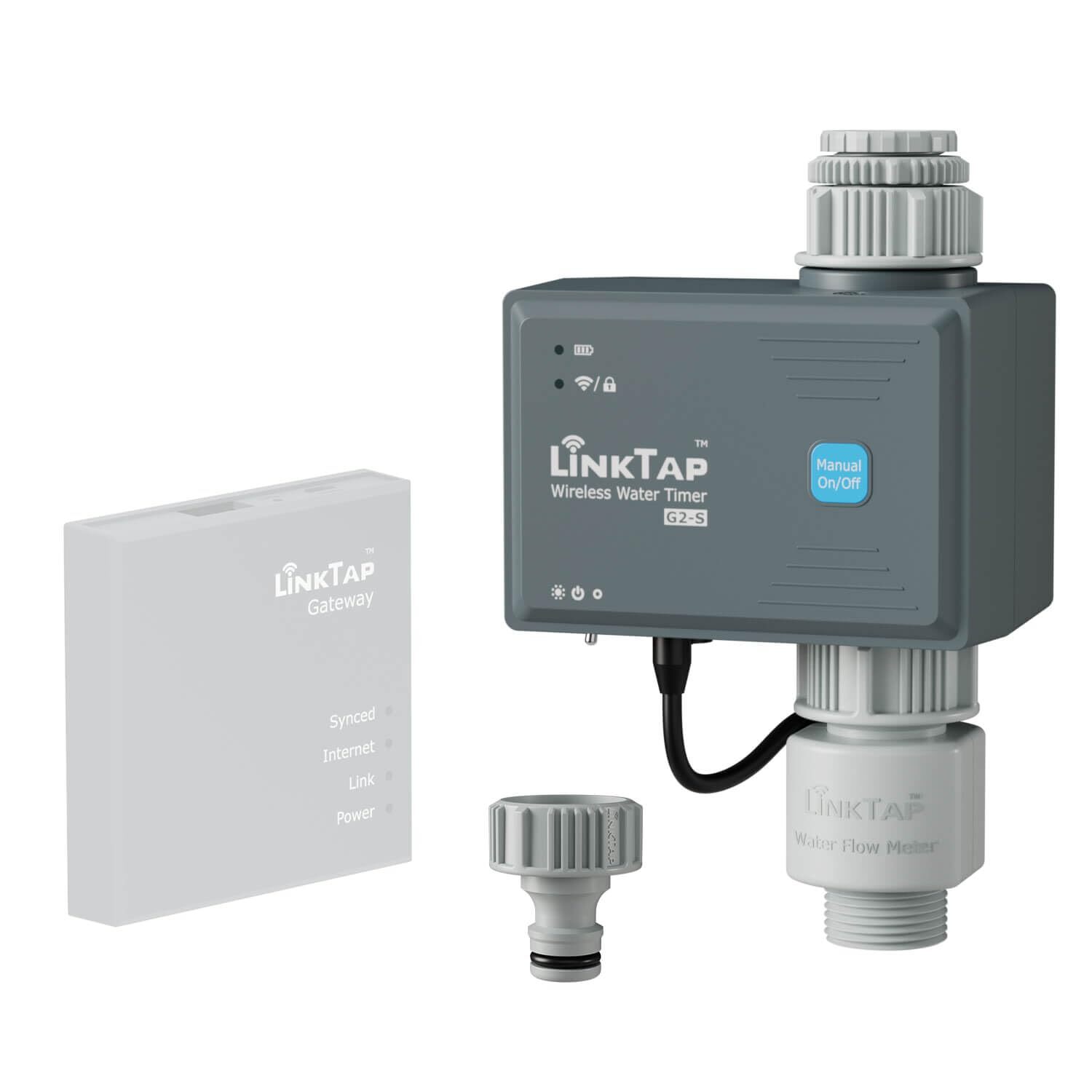 ご注意 - LinkTap散水タイマーを使用するには、LinkTapゲートウェイ(別売)が必要です。1つのゲートウェイで最大15台のLinkTapデバイス(G2S、G1S、D1、T1、Q1、ValveLinker、またはそれらの組み合わせ)を制御できます。