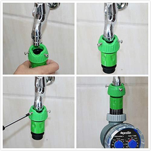 <b>「インストールが簡単」</b>弊店の自動散水タイマーは2つのつまみを通して、異なる時間間隔での灌漑や運行時間などを設定することができます。時間を設置すれば、散水タイマーが自動に運行します。設置する方法が簡単なので、若者でもお年寄りでもすぐ使えます。*緑色のコネクターは贈り物です。