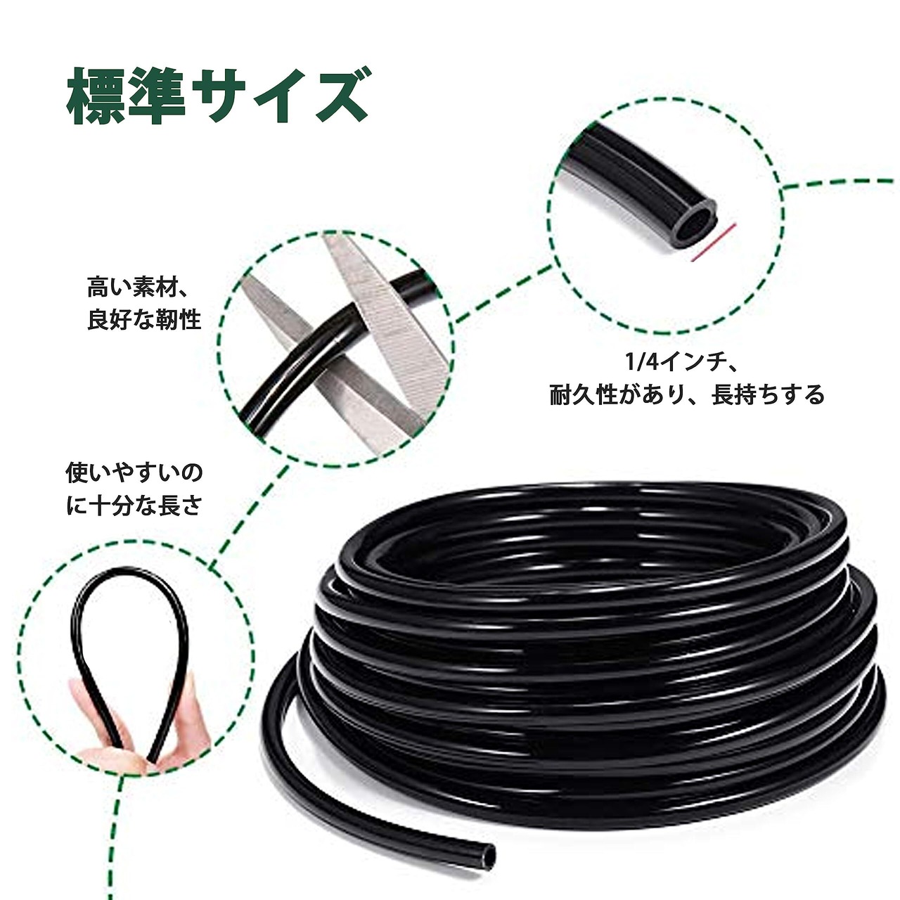 【30m ホース搭載】 ホースの外径:6mm、内径:4mm DIYを楽しむことができ、必要に応じて長さをカットし、自由に組み立てることができます。また、接続を良くするために、よく接続ために、使用前にホースをお湯に10 ~ 20秒浸して軟化させます。